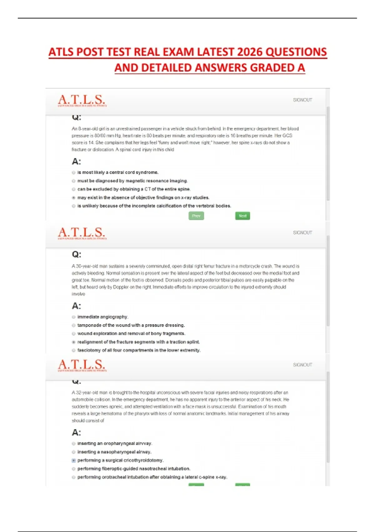 ATLS POST TEST REAL EXAM LATEST 2026 QUESTIONS AND DETAILED ANSWERS GRADED A