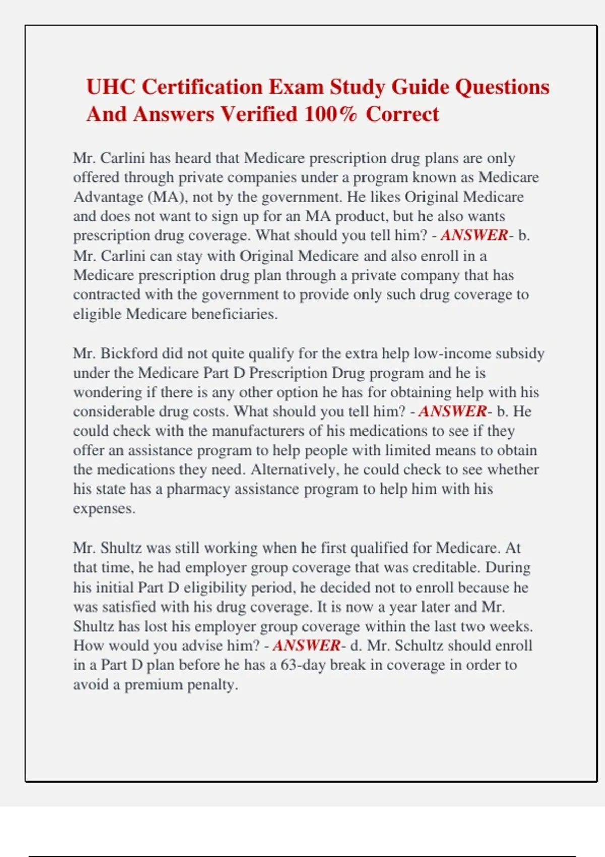 prescription drug coverage. What should you tell him? - ANSWER- b.
