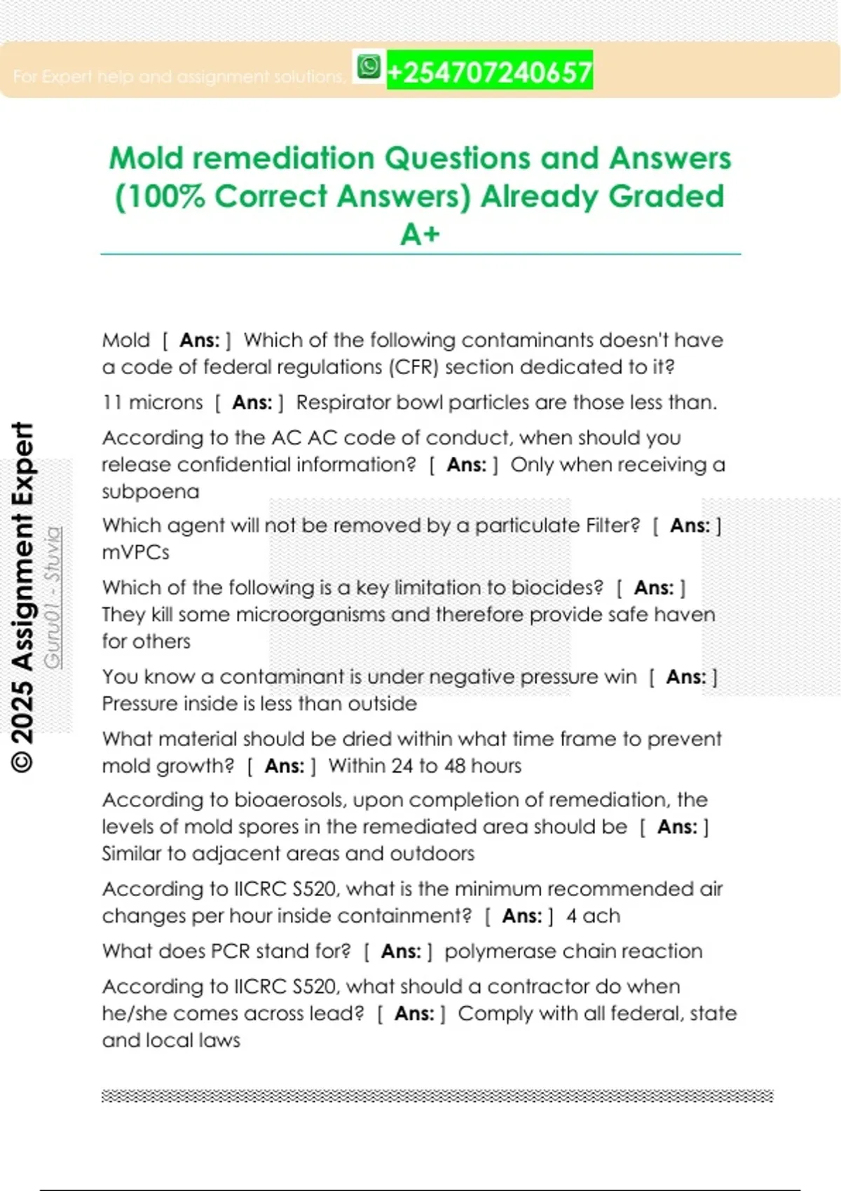 Mold remediation Questions and Answers (100% Correct Answers) Already Graded A+