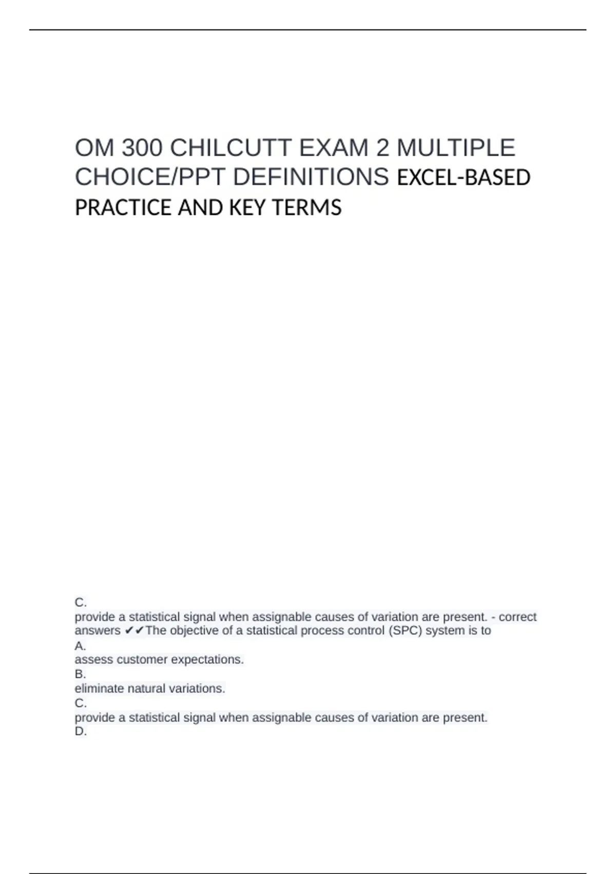 OM 300 CHILCUTT EXAM 2 MULTIPLE