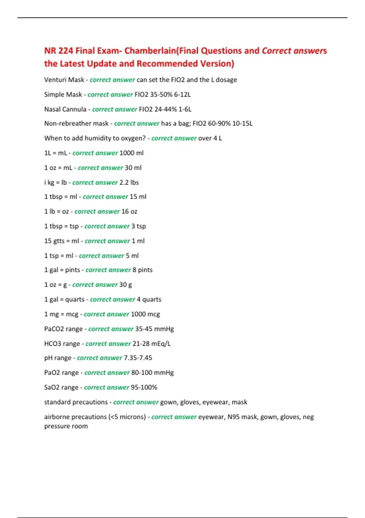 PaO2 range - correct answer 80-100 mmHg