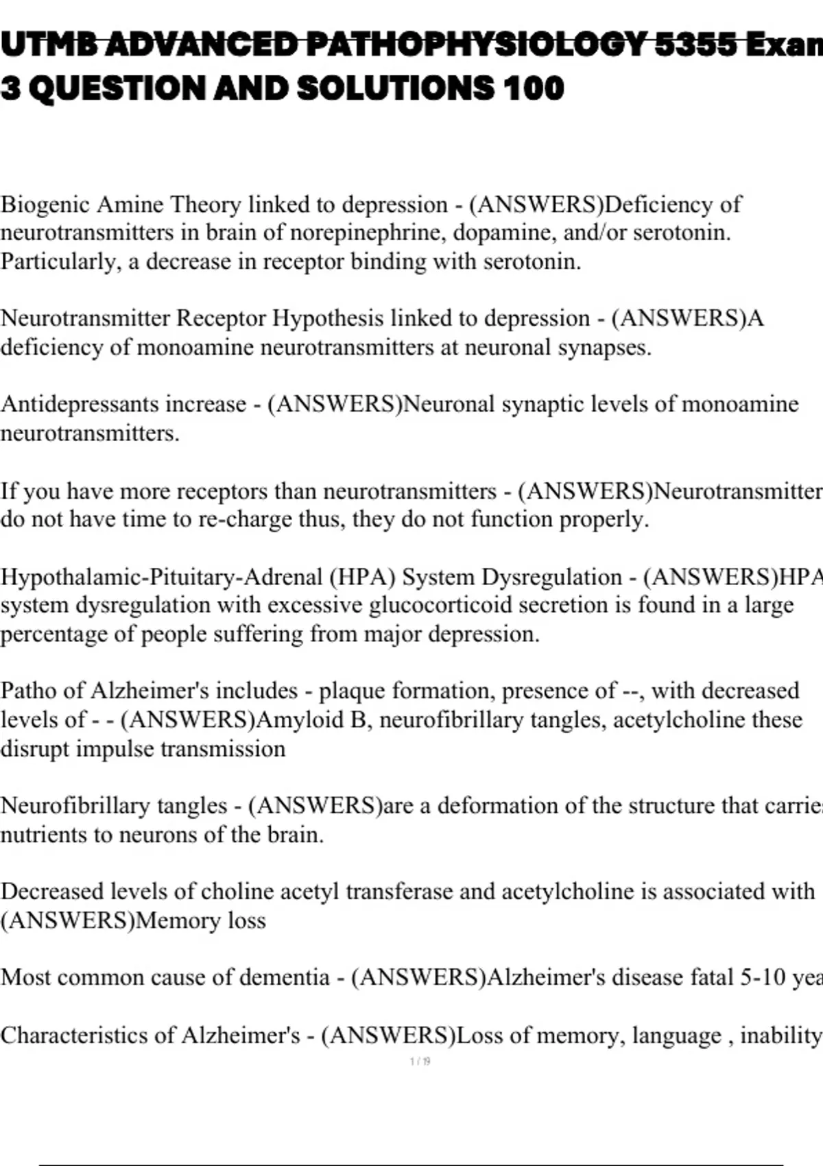UTMB ADVANCED PATHOPHYSIOLOGY 5355 Exam 3 QUESTION AND SOLUTIONS 100