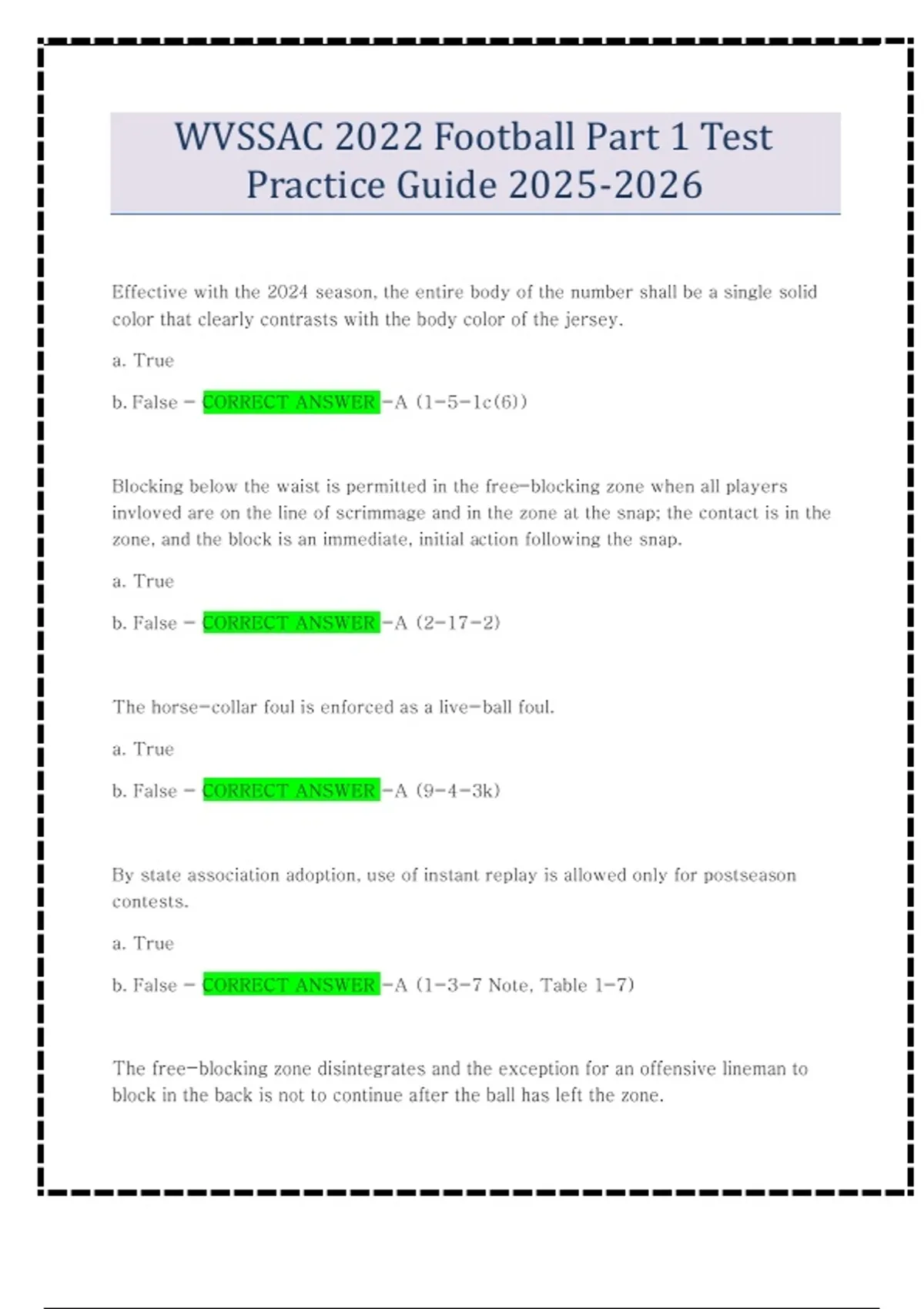 WVSSAC 2022 Football Part 1 Test Practice Guide