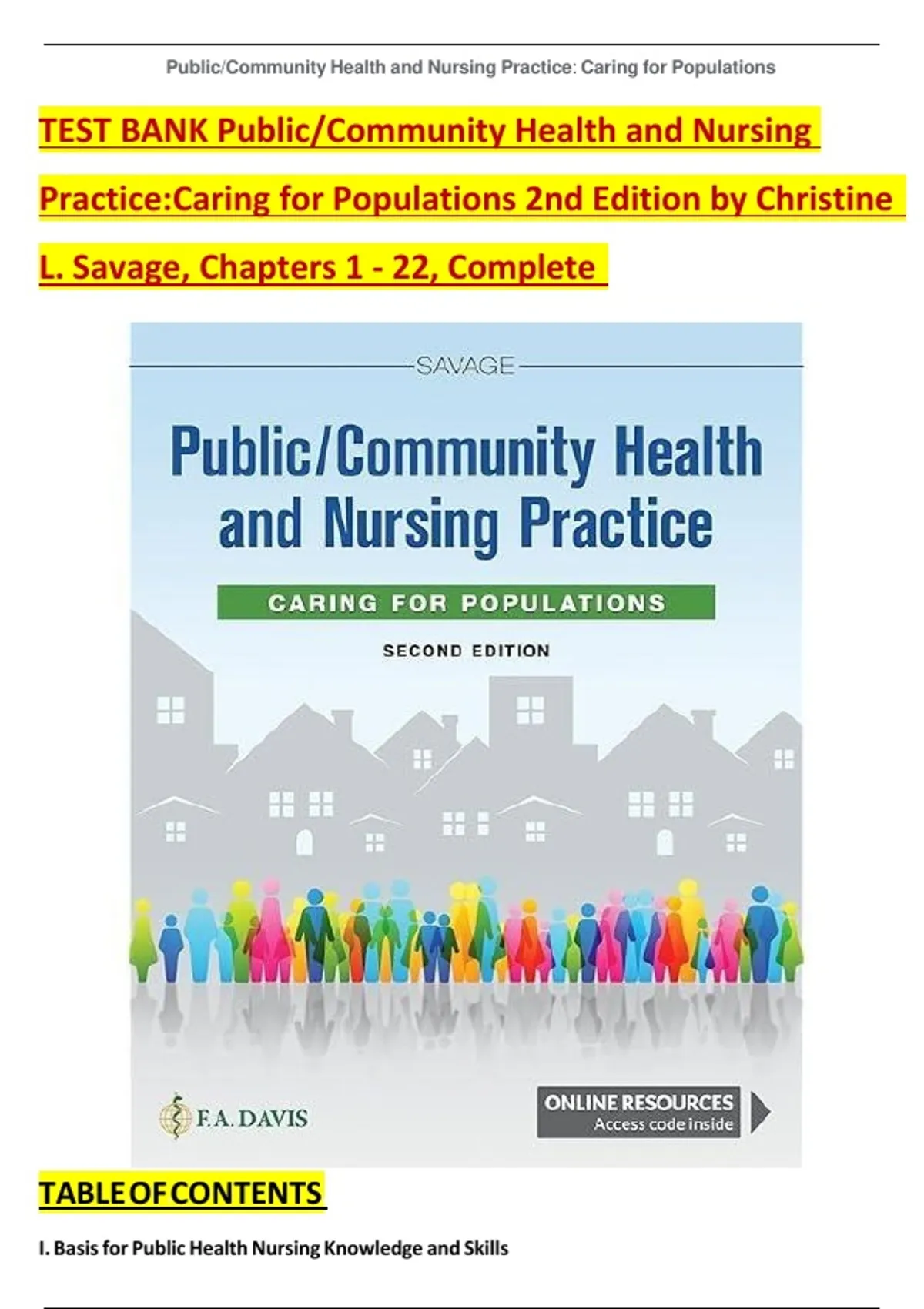 TEST BANK Public/Community Health and Nursing Practice:Caring for Populations 2nd Edition by Christine L. Savage, Chapters 1 - 22, Complete