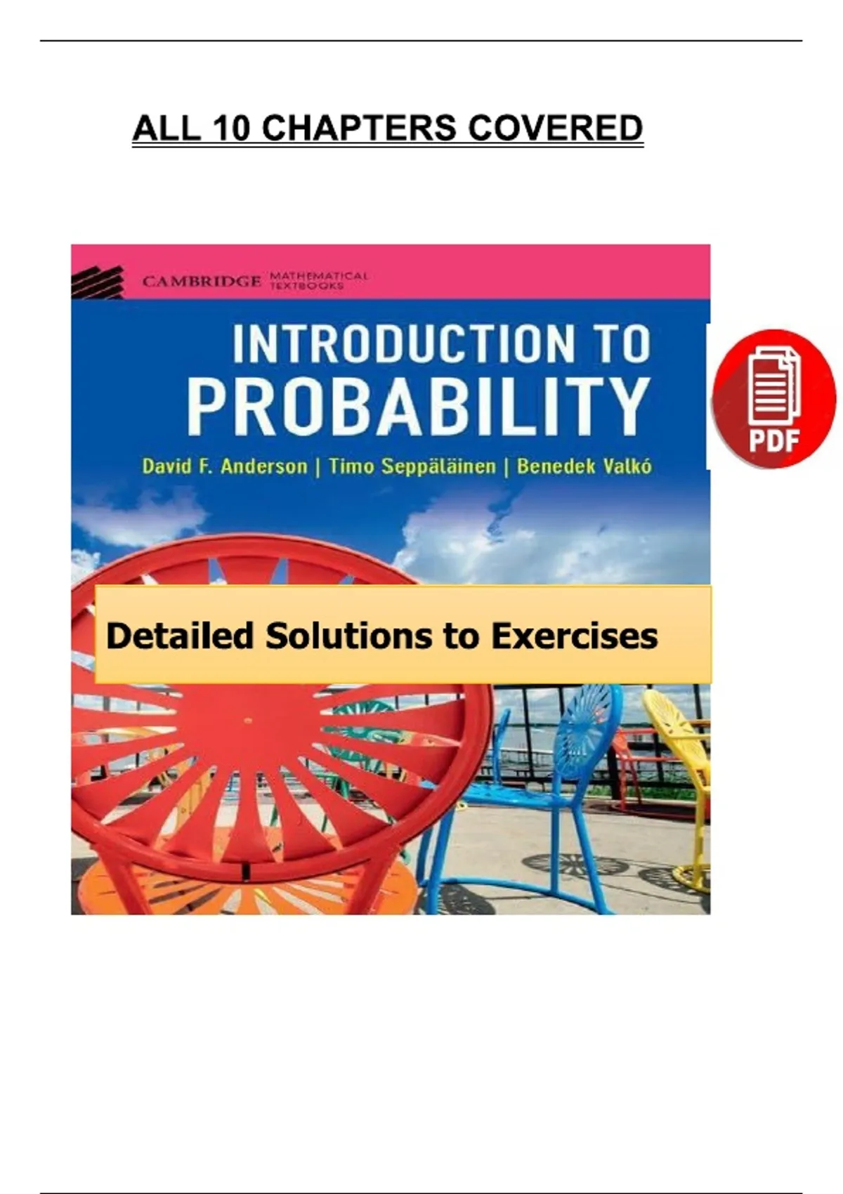 INSTANT PDF DOWNLOAD — Complete, step-by-step solutions to all exercises from Introduction to Probability by *Anderson, Seppäläinen & Valkó (Cambridge, first edition 2017). Covers sample spaces & axioms, counting, conditional probability & Bayes, random variables (discrete/continuous), common distributions, expectation/variance & MGFs, joint distributions & covariance, limit theorems (LLN/CLT), Markov chains, Poisson processes, and applied problem sets. Clear derivations, diagrams, and calculator/Excel tips—ideal for homework checks, exam prep, and fast revision. Publication year verified via Amazon listing and bookstore records. introduction to probability solutions, Anderson solutions manual, Cambridge probability textbook, discrete and continuous distributions, conditional probability Bayes answers, combinatorics counting solutions, expectation variance problems, moment generating function solutions, joint distributions covariance, central limit theorem practice, law of large numbers answers, Markov chain exercises solved, Poisson process solutions, random variables problems, probability homework help pdf, chapter solutions probability, worked examples probability book, exam prep probability, step by step probability solutions, instant pdf download