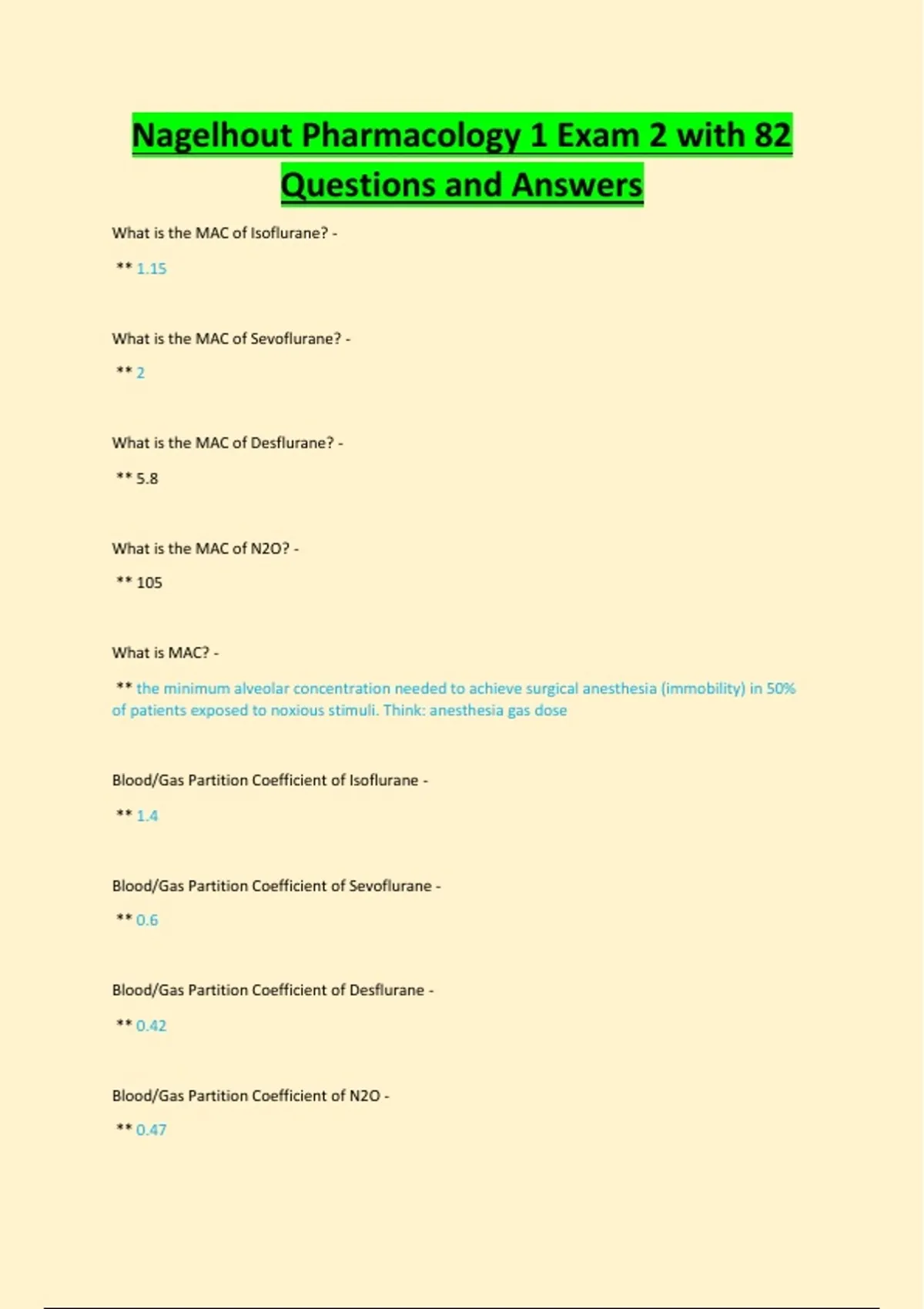 Nagelhout Pharmacology 1 Exam 2 with 82 Questions and Answers.