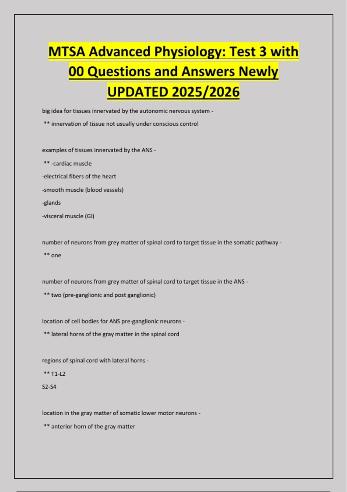 MTSA Advanced Physiology: Test 3 with
