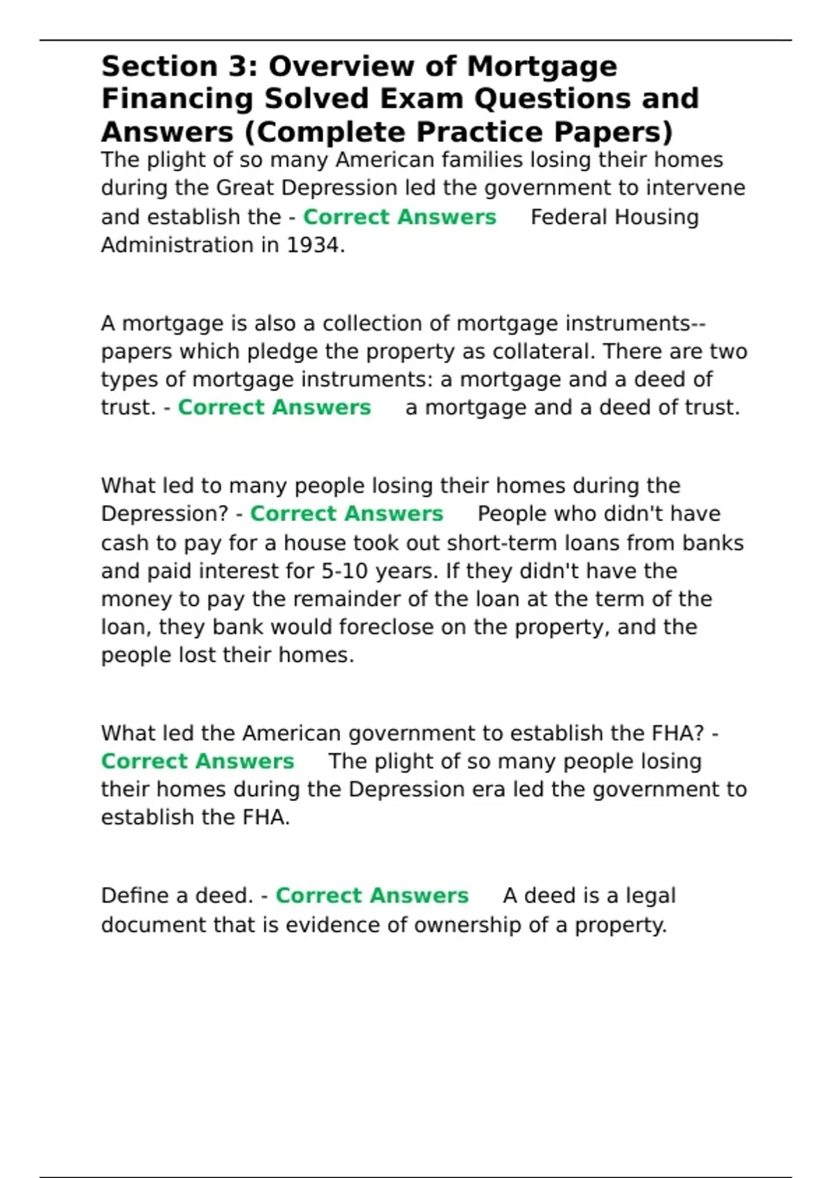 and establish the - Correct Answers ✅Federal Housing