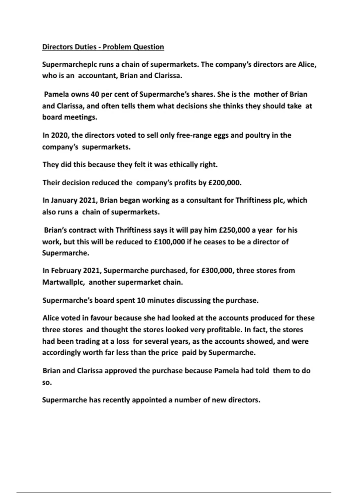 Directors Duties - Problem Question