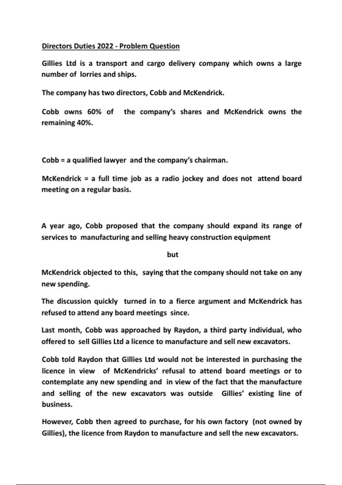 Directors Duties 2022 - Problem Question