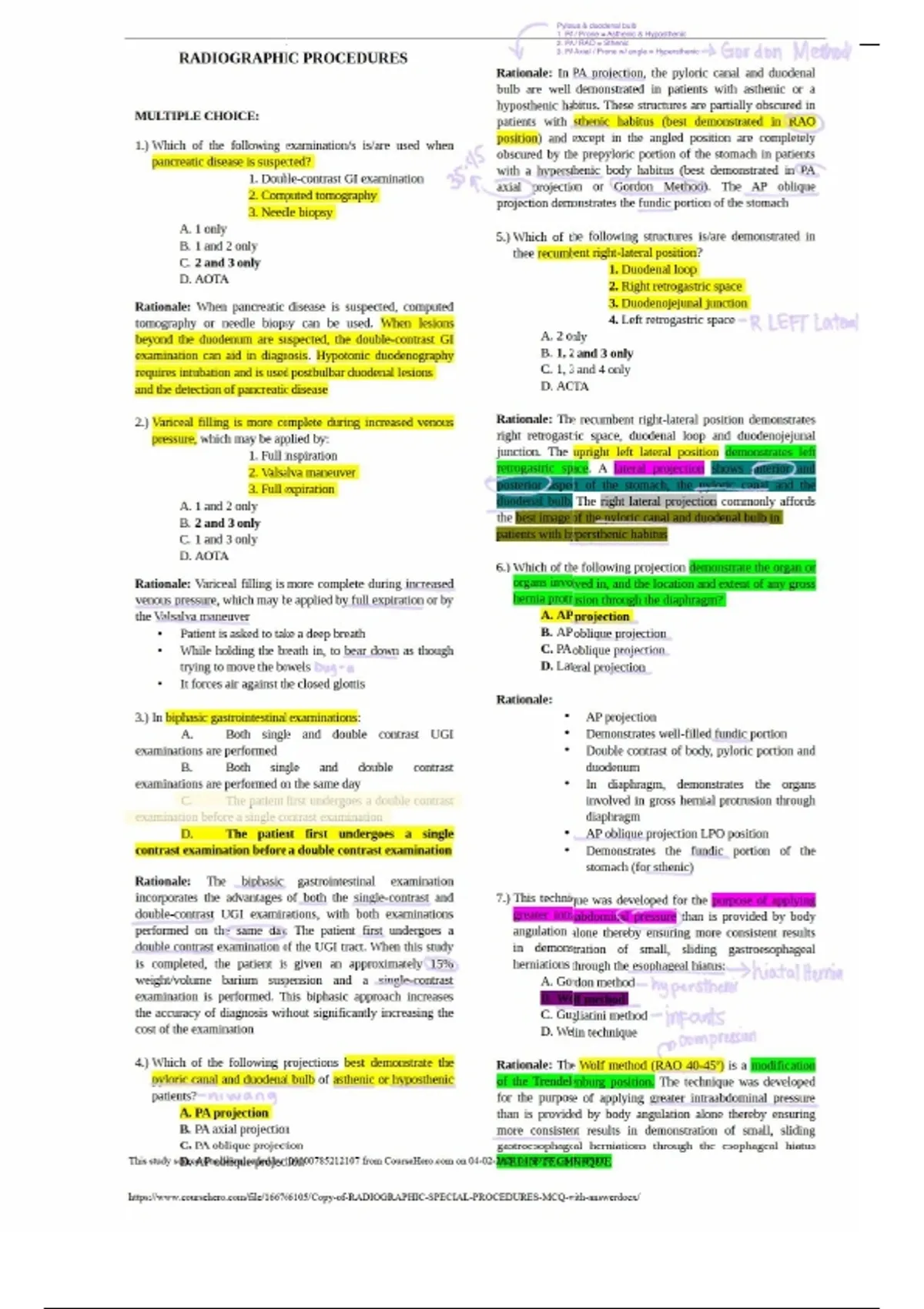 COPY OF RADIOGRAPHIC SPECIAL PROCEDURES MCQ WITH ANSWER GRADED A+