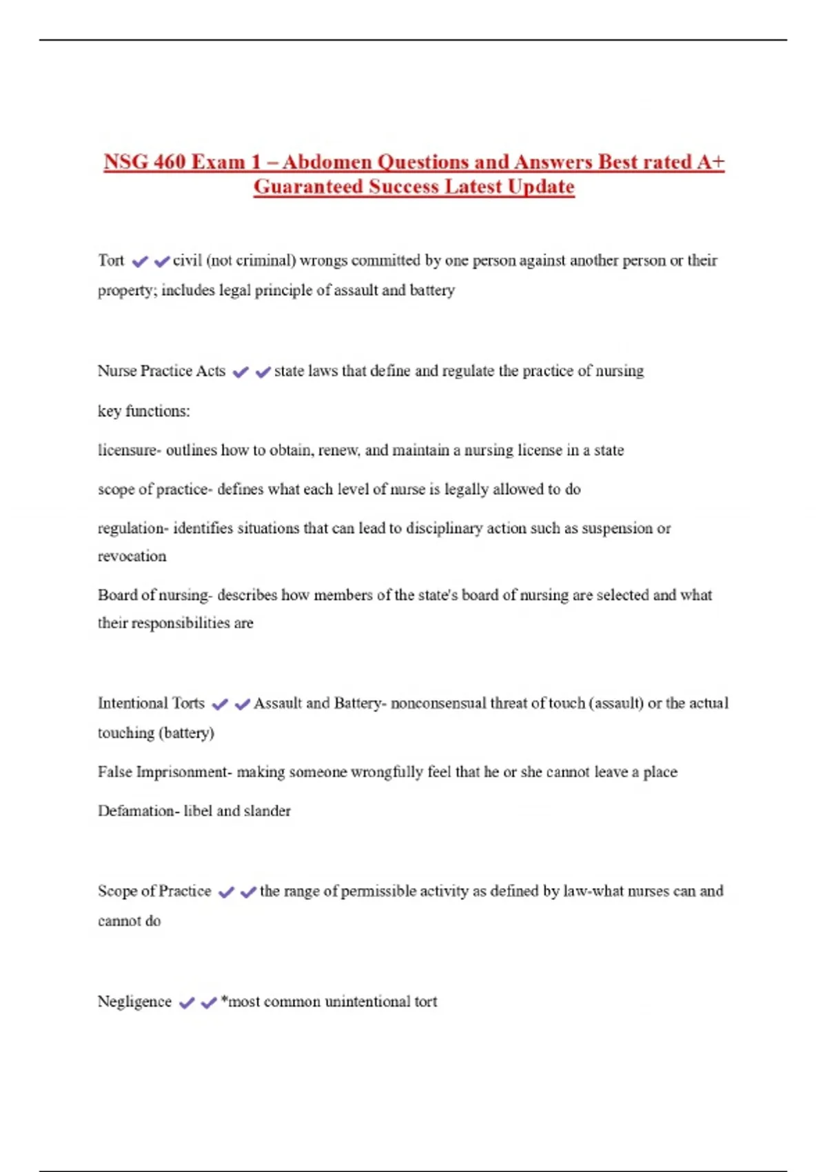 NSG 460 Exam 1 Study Set Questions And Answers With Verified Study Solutions Updated Solutions