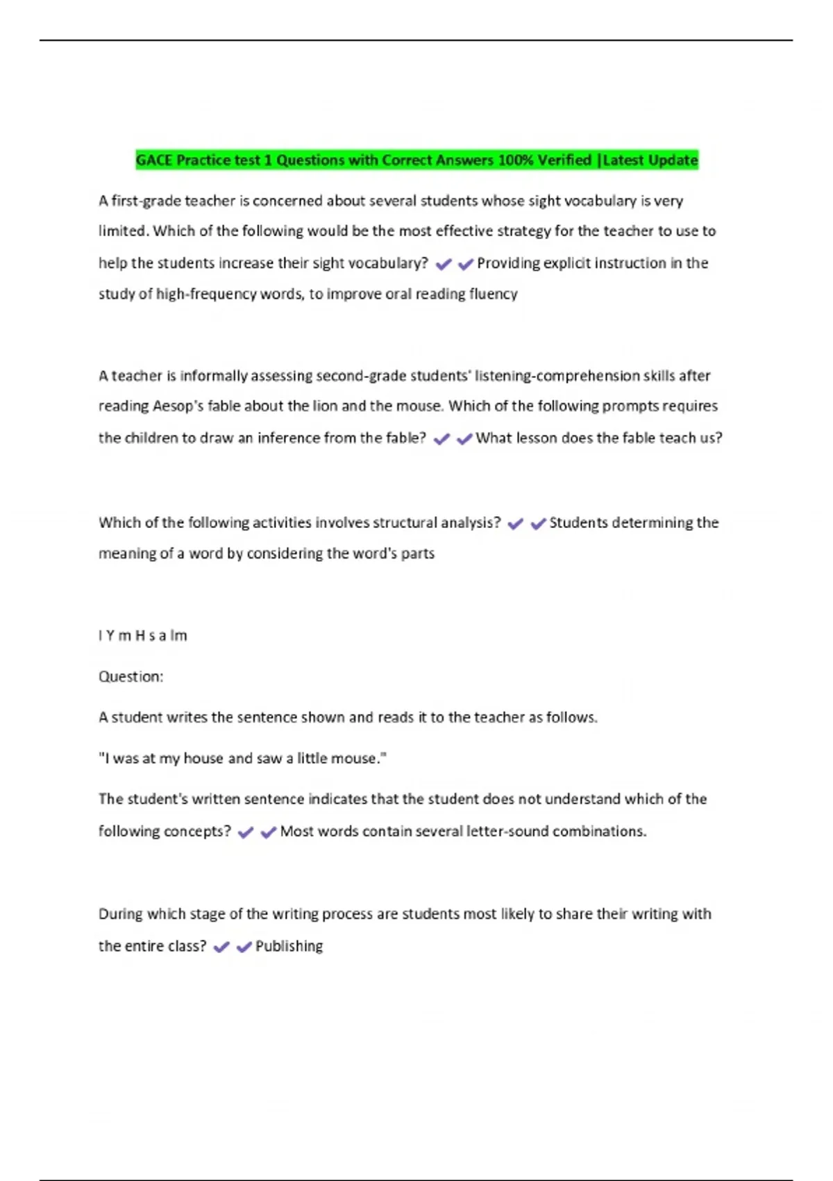 GACE Practice test 1 Questions with Correct Answers 100% Verified |Latest Update