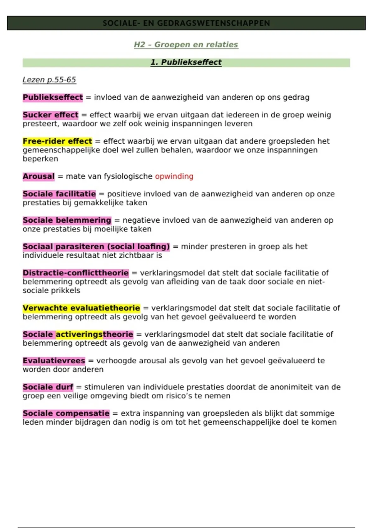 Volledig hoofdstuk samengevat Samenvatting H2, Groepen en relaties (Antropia, S&GW, 6e middelbaar) Ik had altijd zeer goede punten op de toetsen en had een jaartotaal van 83% (juist puntje 1 over publiekseffect moeten wij niet kennen, buiten de begrippen, dus dat moet je zelf nog toevoegen)