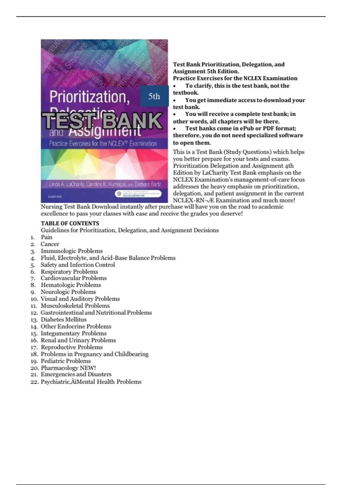 Nursing Test Bank Download instantly after purchase will have you on the road to academic