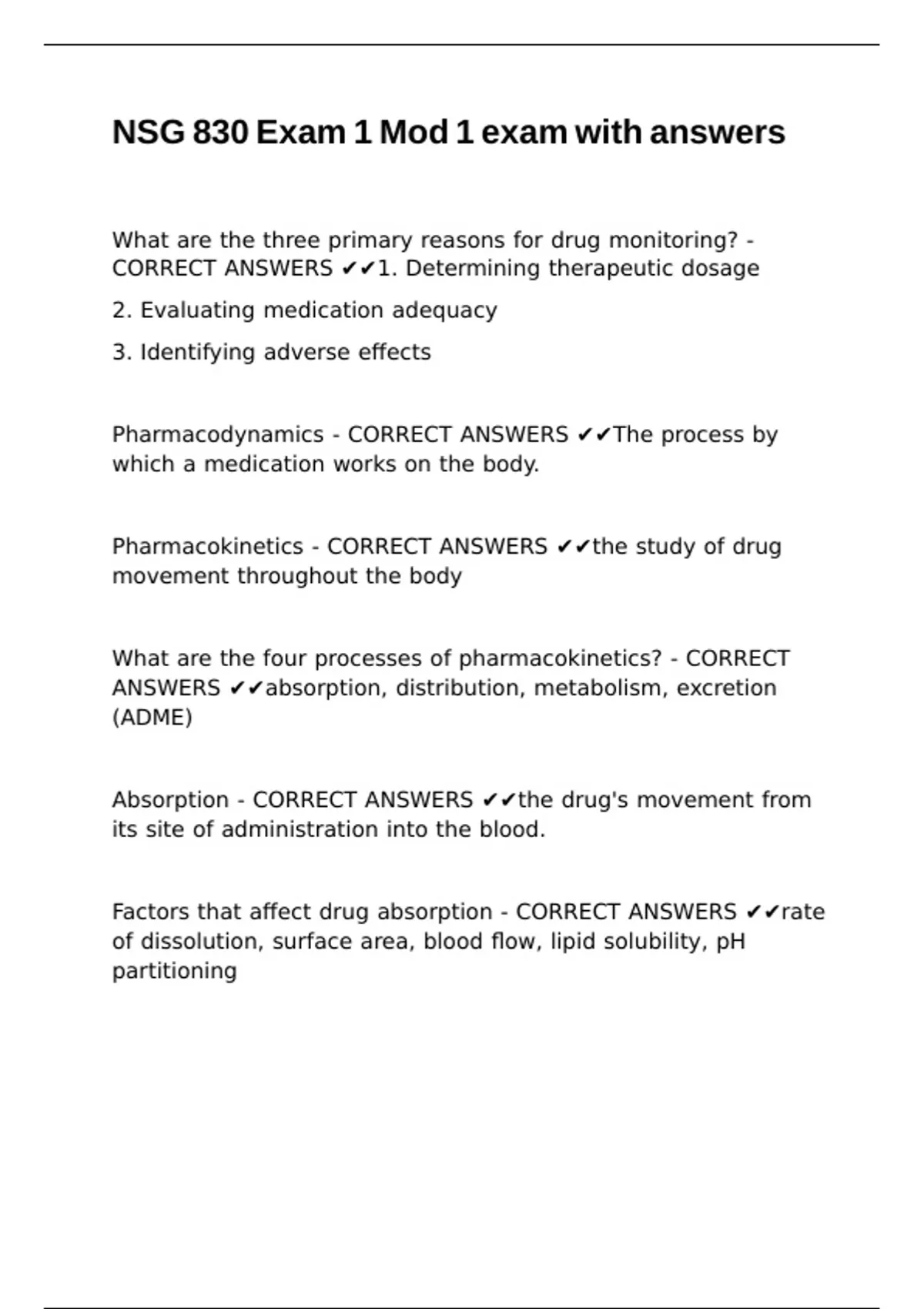 CORRECT ANSWERS ✔✔1. Determining therapeutic dosage