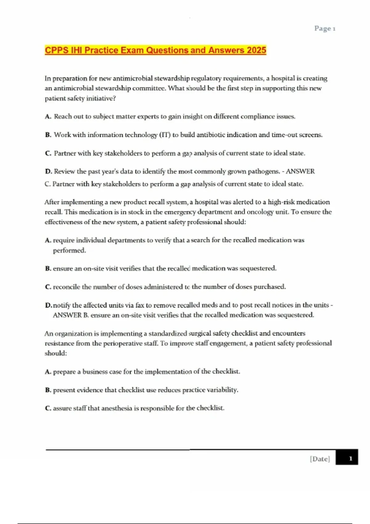 CPPS IHI Practice Exam Questions and Answers 2025 CPPS IHI Practice Exam Questions and Answers 2025