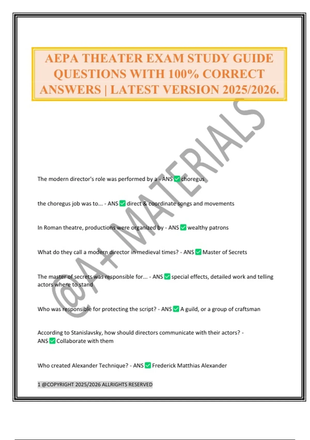 AEPA THEATER EXAM STUDY GUIDE QUESTIONS WITH 100% CORRECT ANSWERS | LATEST VERSION 2025/2026.