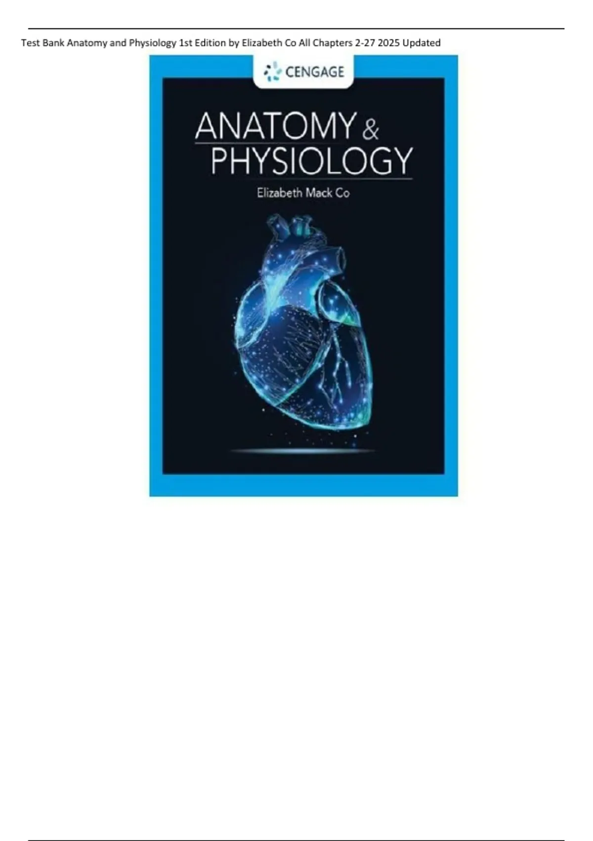 Test Bank Anatomy and Physiology 1st Edition by Elizabeth Co All Chapters 2-27 2025 Updated