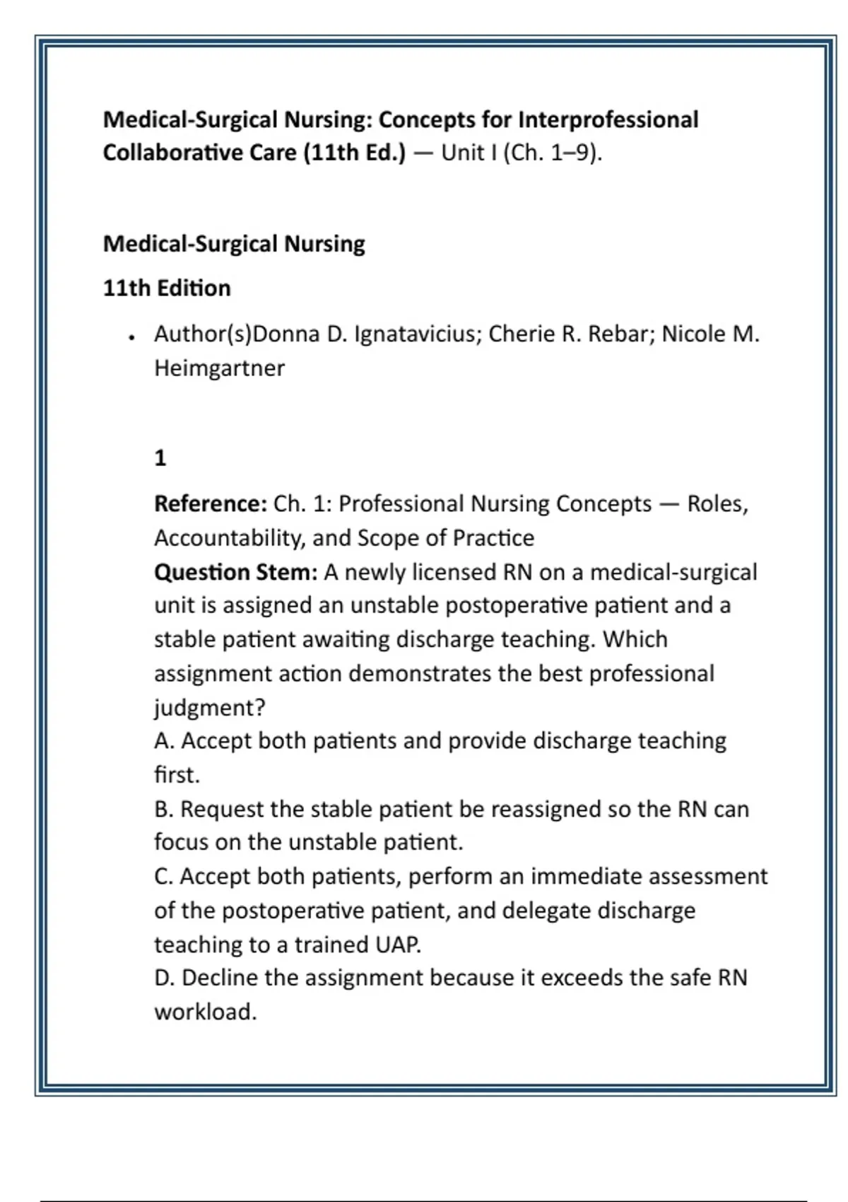 Citation: Ignatavicius et al., 2024, Ch. 1: Roles and