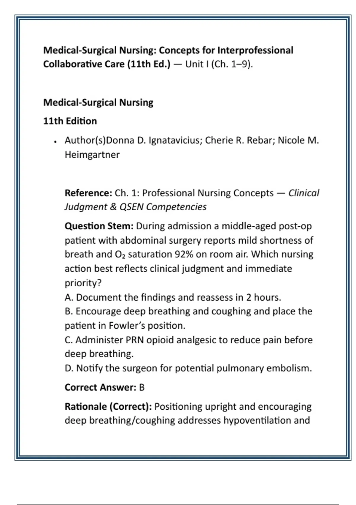Nursing Concepts — Clinical Judgment & Safety