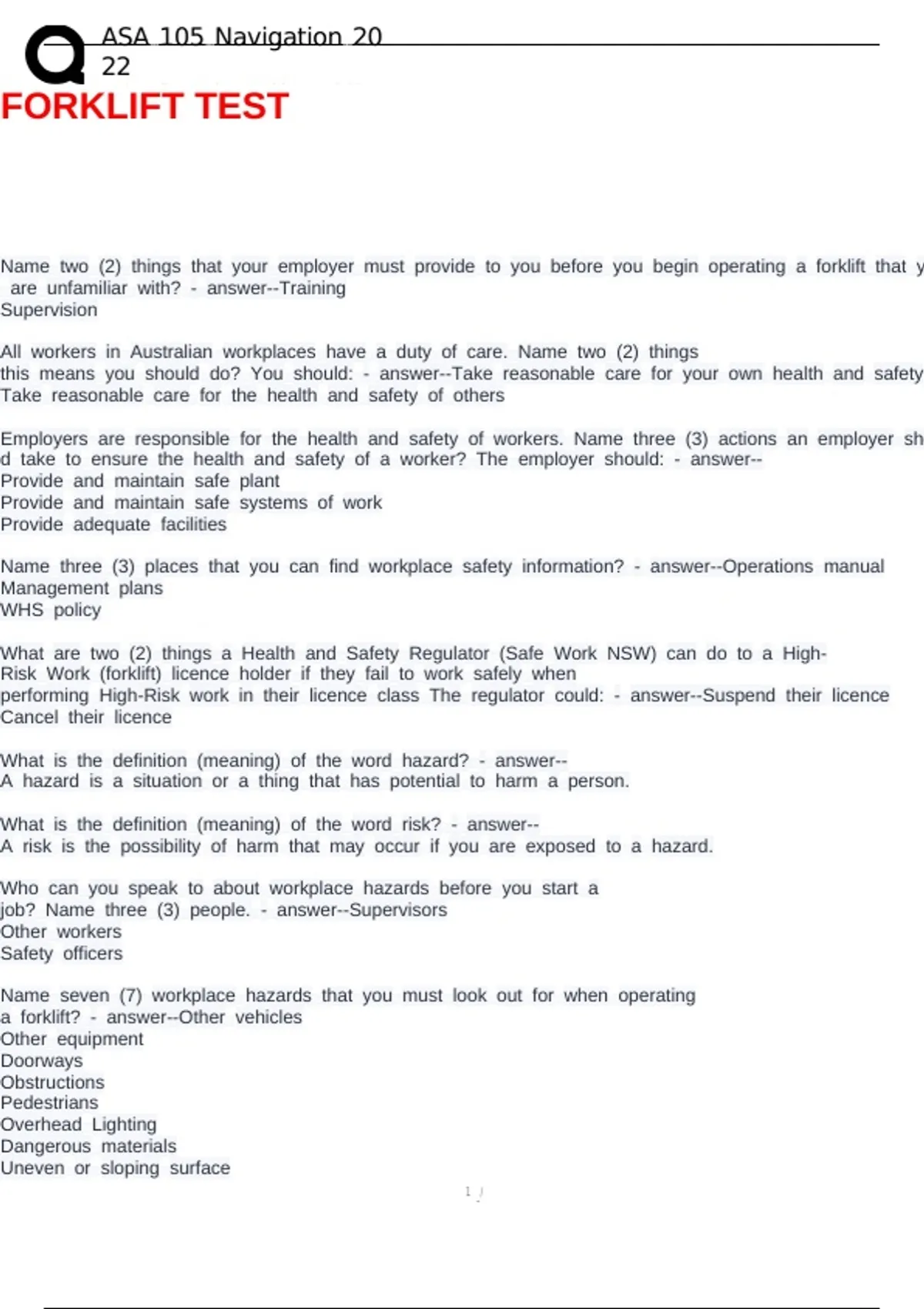 Exam of 6 pages for the course FORKLIFT CERTIFICATION EXM at FORKLIFT CERTIFICATION EXM (FORKLIFT TEST)