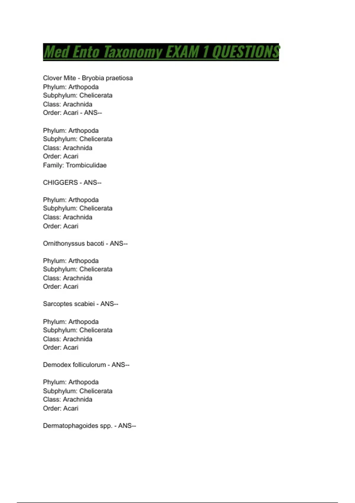 Order: Acari - ANS--