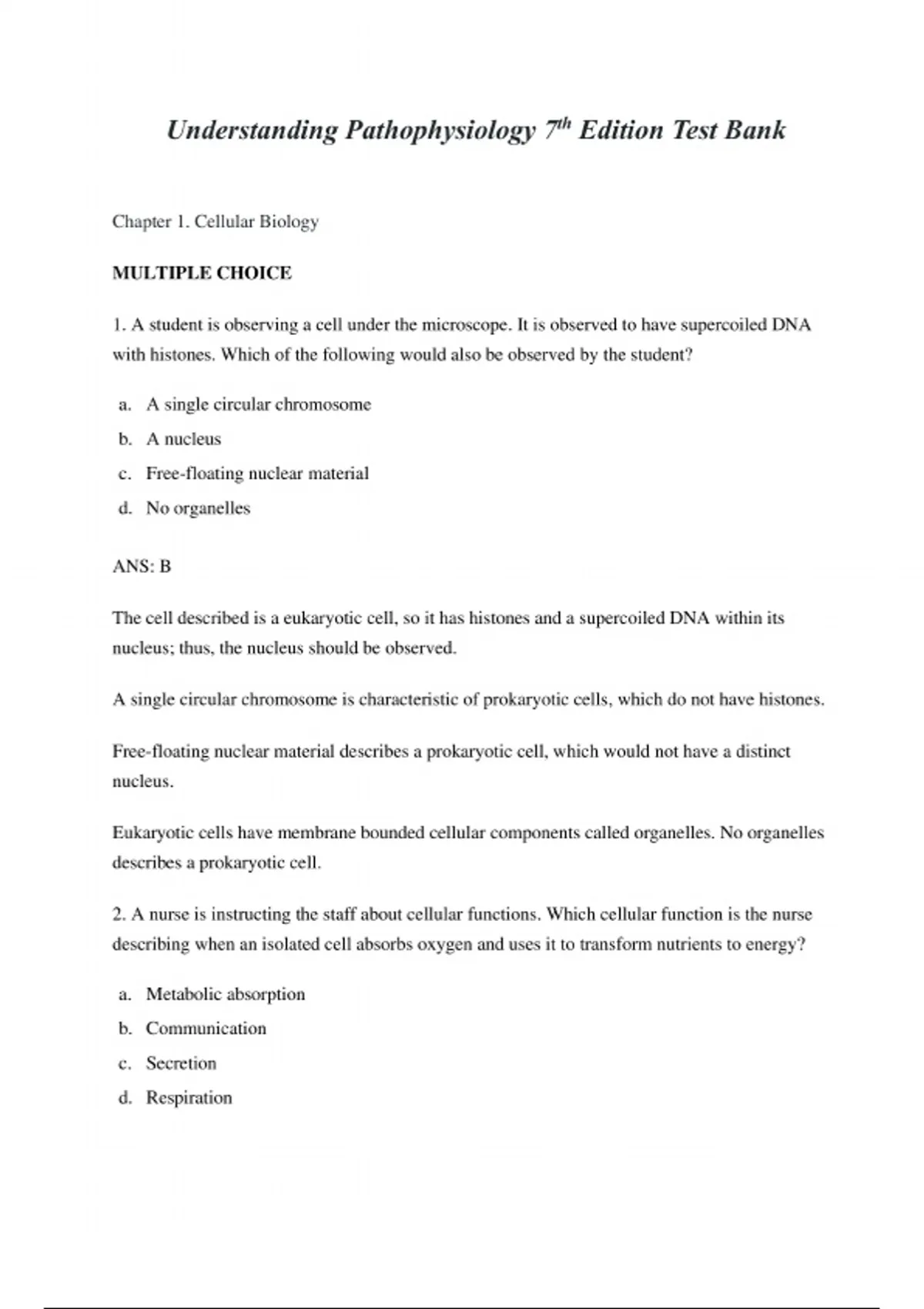 Access the complete Test Bank for Understanding Pathophysiology, 7th Edition. Includes detailed chapter-by-chapter multiple-choice, true/false, and short-answer questions with verified answers—ideal for nursing, medical, and health science students preparing for exams and quizzes.
