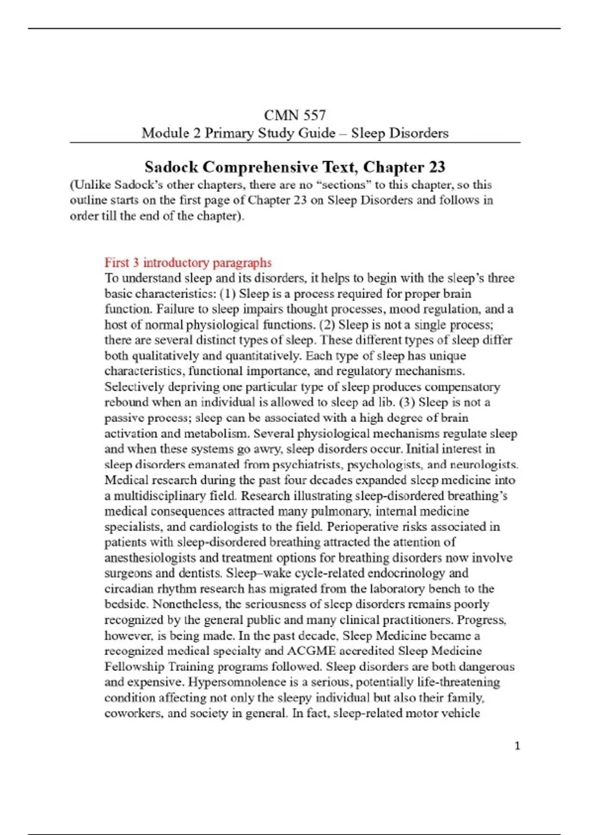 Summary CMN 557 Module 2 Primary Study Guide – Sleep Disorders | Fall 2025/2026 Update with complete solutions.