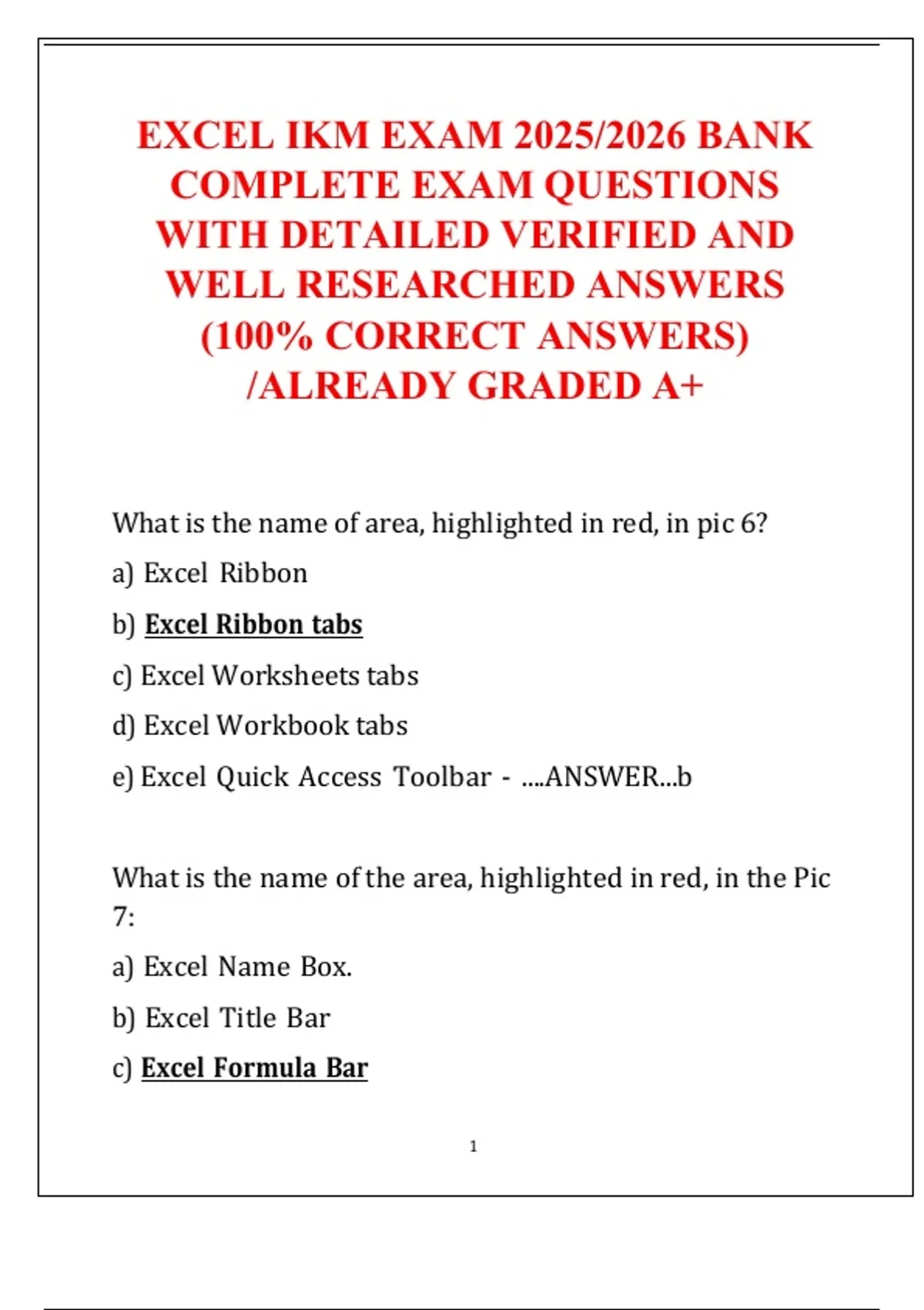 e) Excel Quick Access Toolbar - ....ANSWER...b