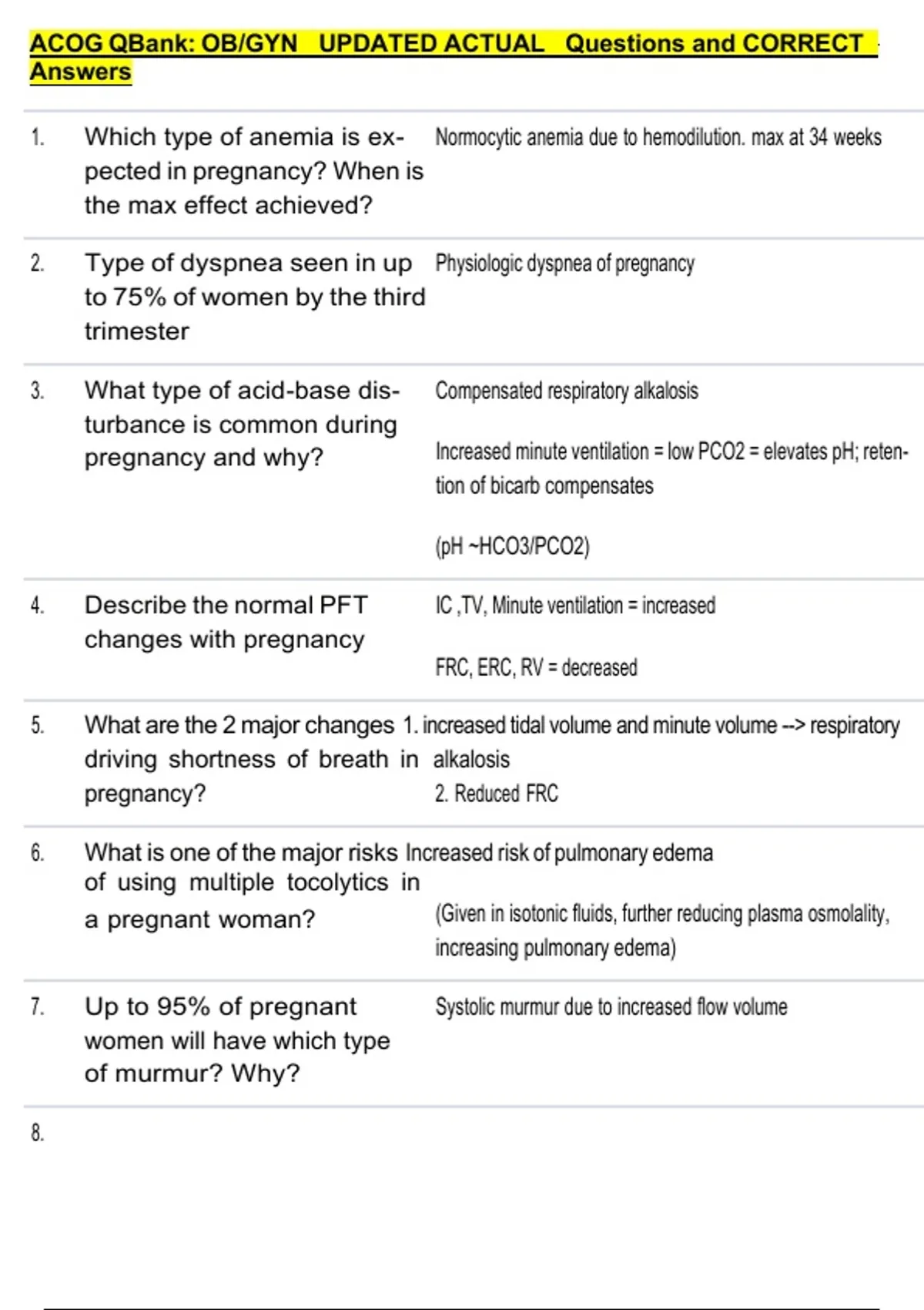 1. Which type of anemia is ex- Normocytic anemia due to hemodilution. max at 34 weeks