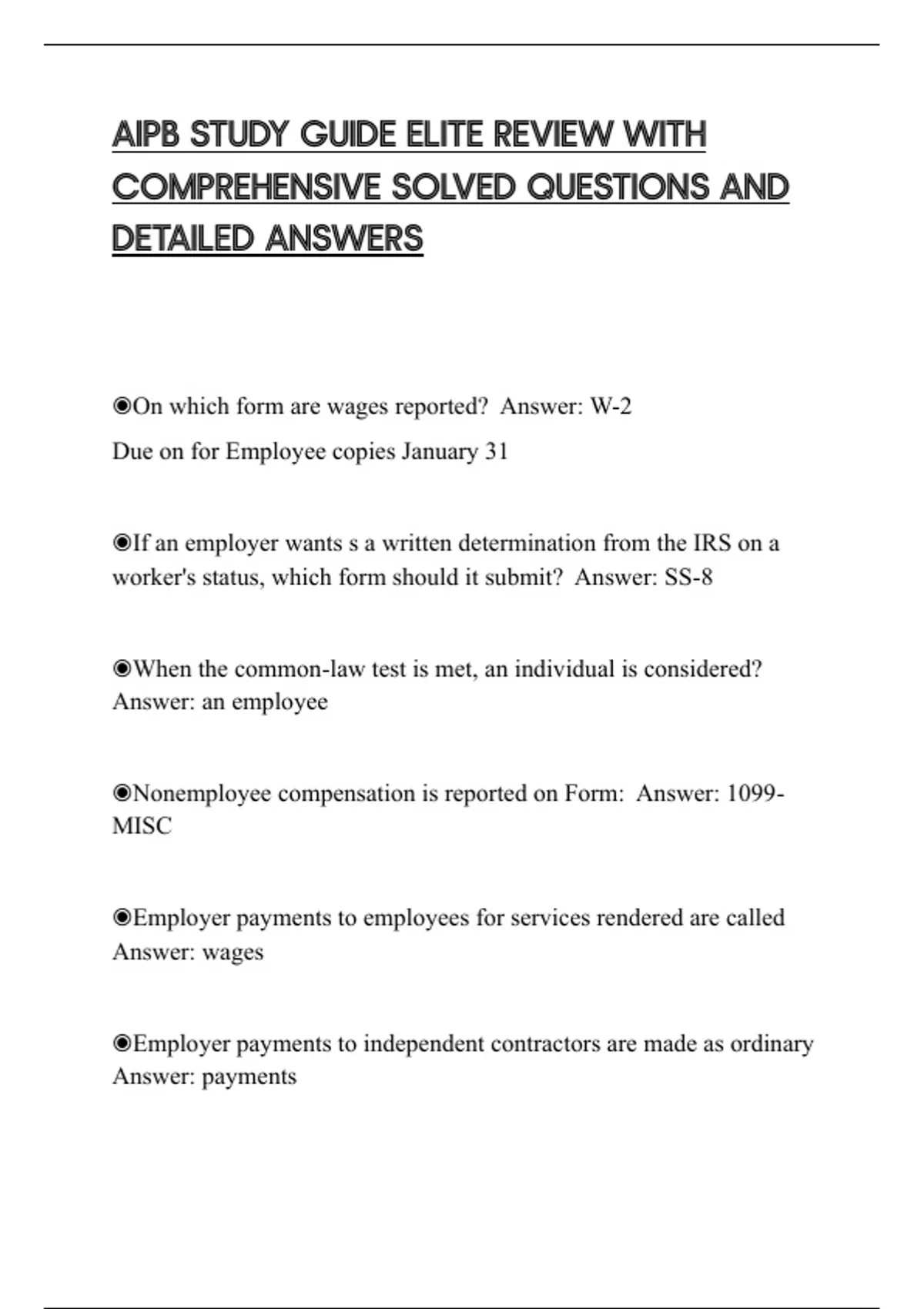 AIPB STUDY GUIDE ELITE REVIEW WITH COMPREHENSIVE SOLVED QUESTIONS AND DETAILED ANSWERS