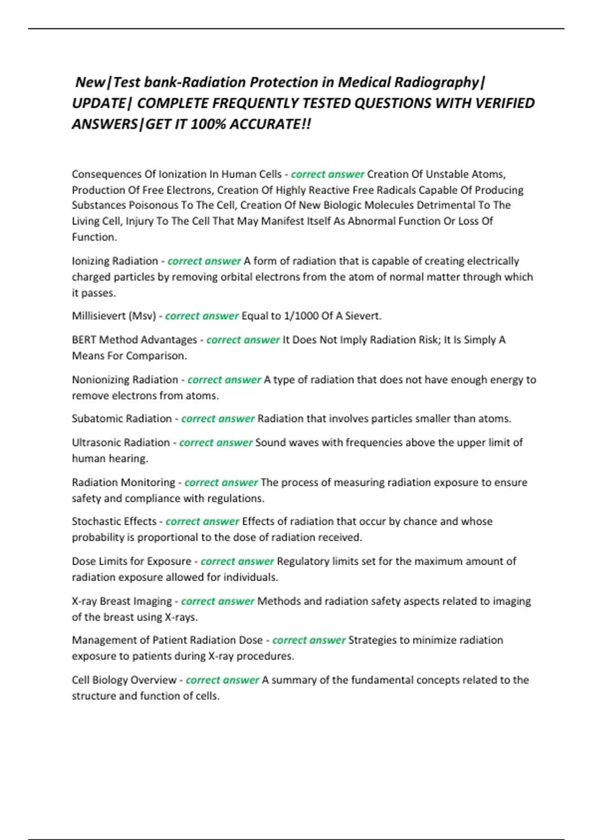 ,Molecular and Cellular Radiation Biology - correct answer Study of the effects of radiation on