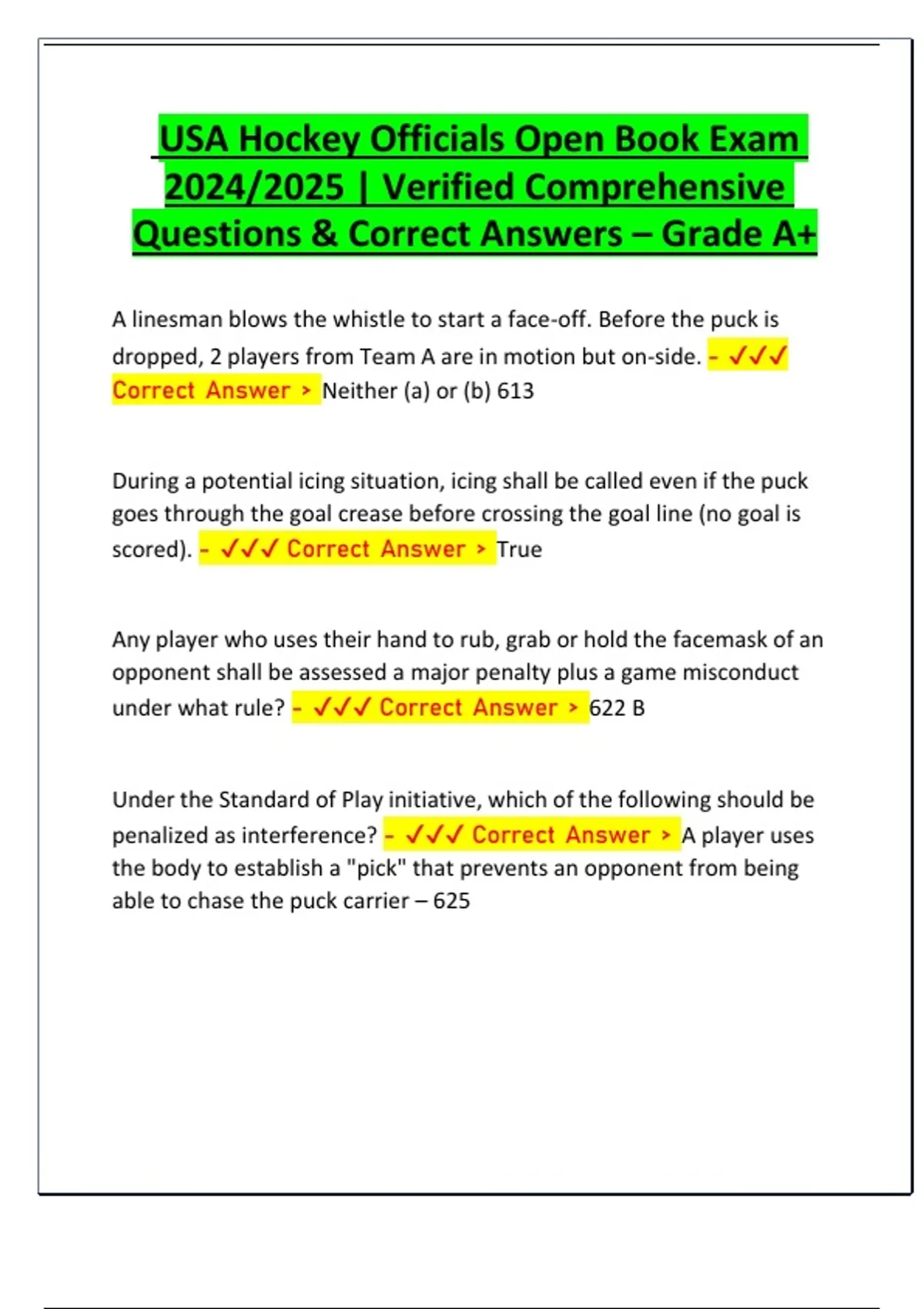 Questions & Correct Answers – Grade A+
