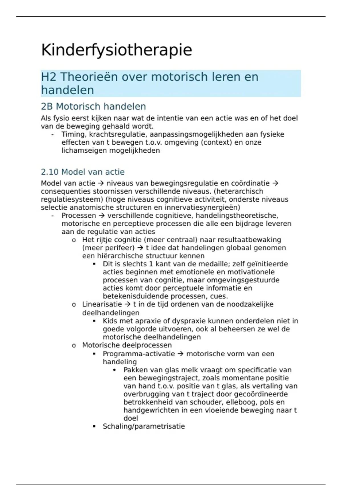 Samenvatting van H2 Theorieën over motorisch leren en handelen, H3 Groei en Ontwikkeling en H4 Motorische Ontwikkeling van het boek Kinderfysiotherapie van Ron van Empelen, Ria Nijhuis-van der Sanden en Annelies Hartman. 4e druk
