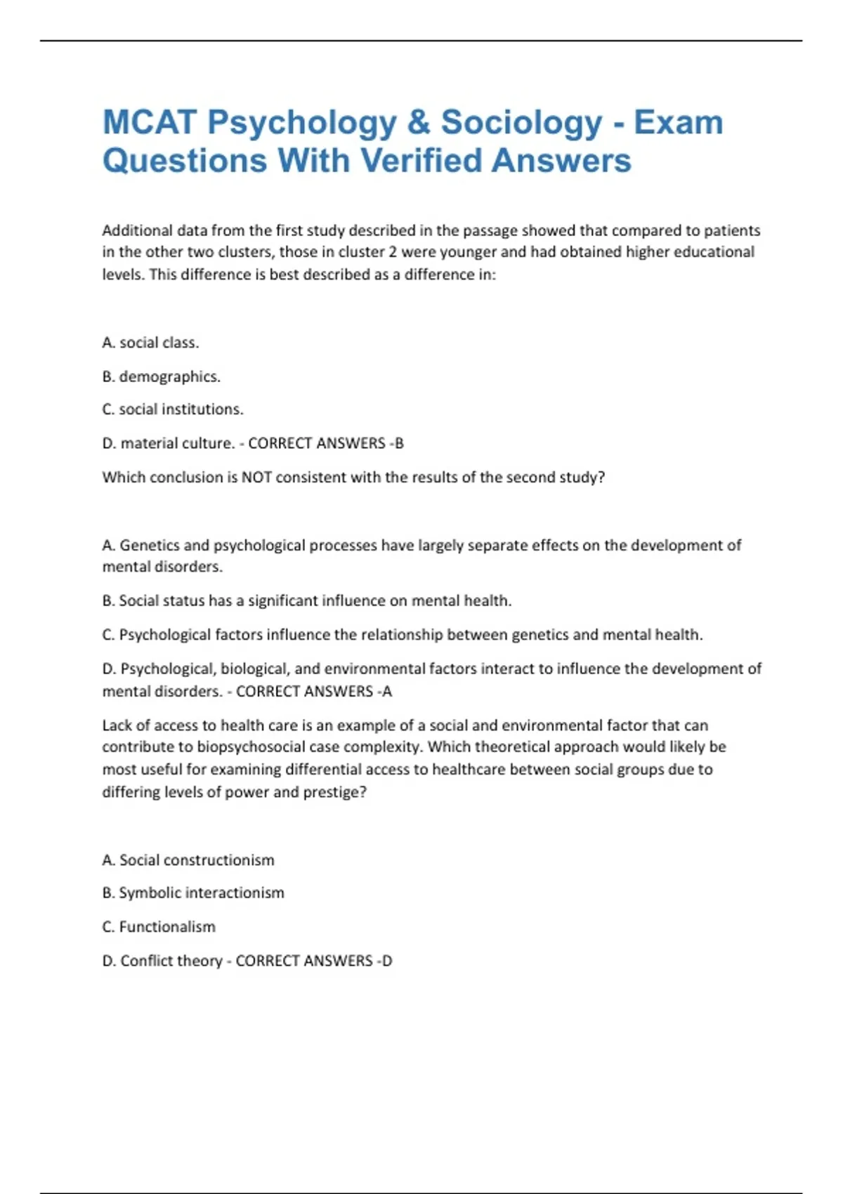 CORRECT ANSWERS -D