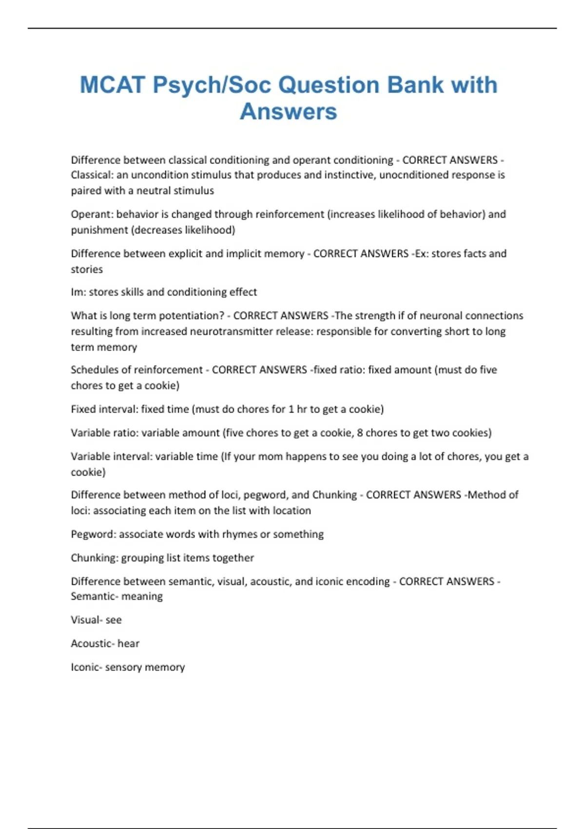 MCAT Psych/Soc Question Bank with