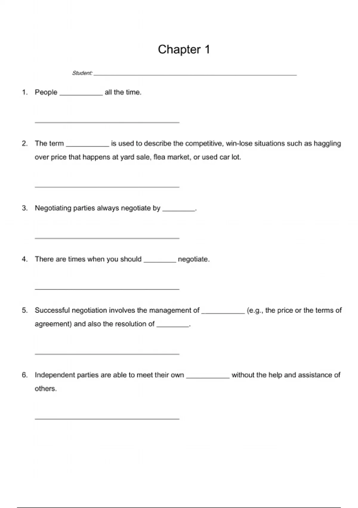- negociation test bank