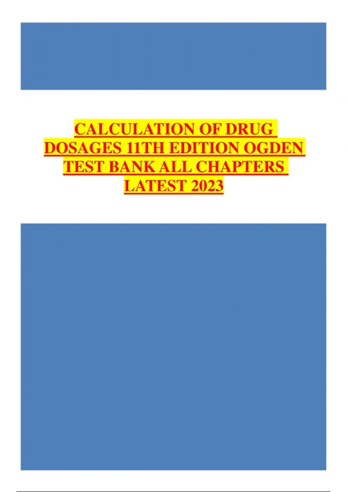 Prepare effectively for nursing and pharmacology exams with this verified Test Bank for Calculation of Drug Dosages (11th Edition) — featuring accurate, instructor-approved questions and answers to help you master dosage calculations, medication administration, and clinical math skills essential for safe nursing practice.