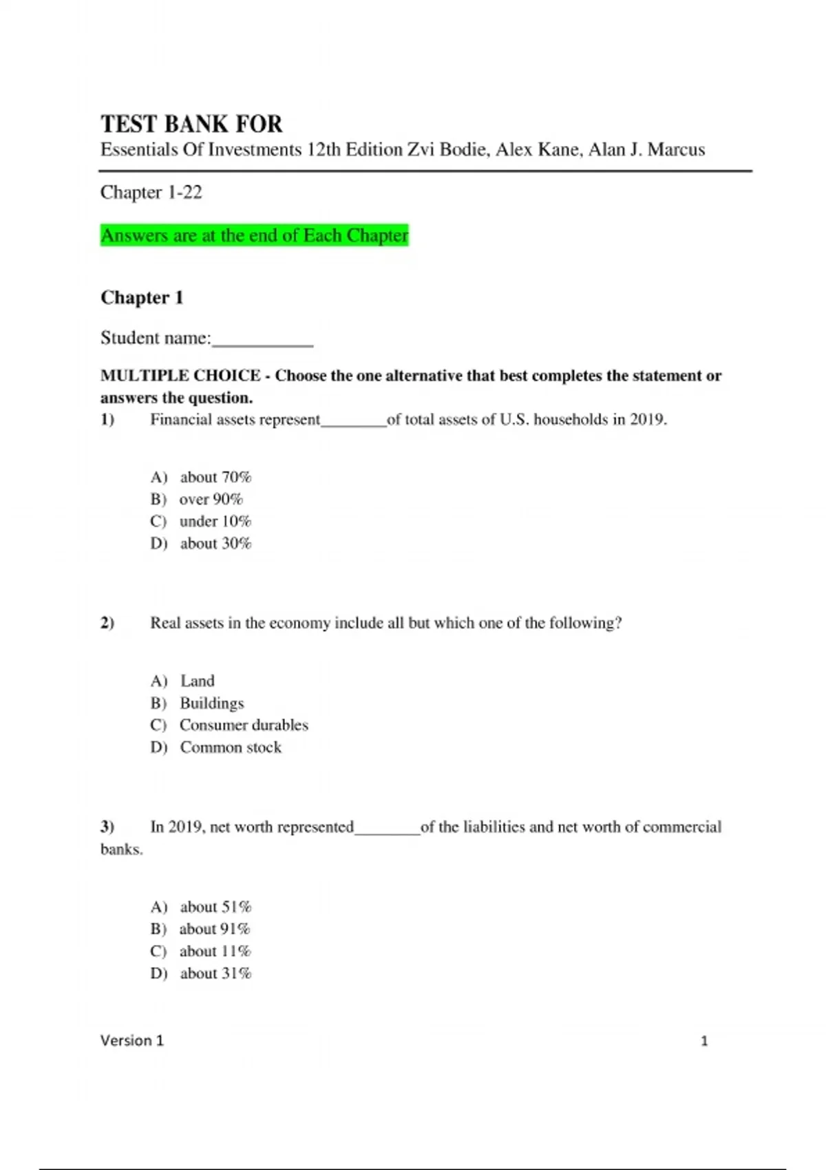 Prepare effectively for finance and investment exams with this verified Test Bank for Essentials of Investments (12th Edition) — featuring accurate, instructor-approved questions and answers to help you master investment principles, portfolio management, risk analysis, and financial decision-making.