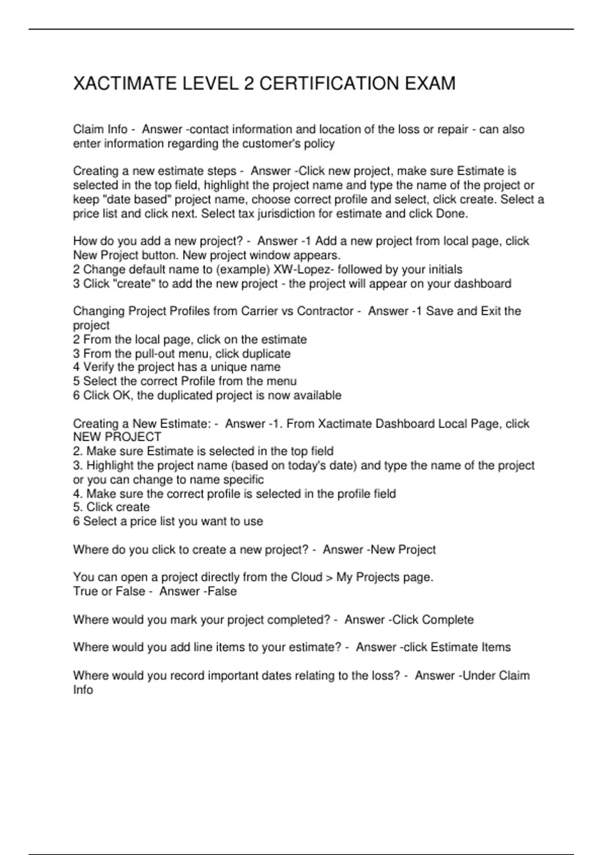 XACTIMATE LEVEL 2 CERTIFICATION EXAM