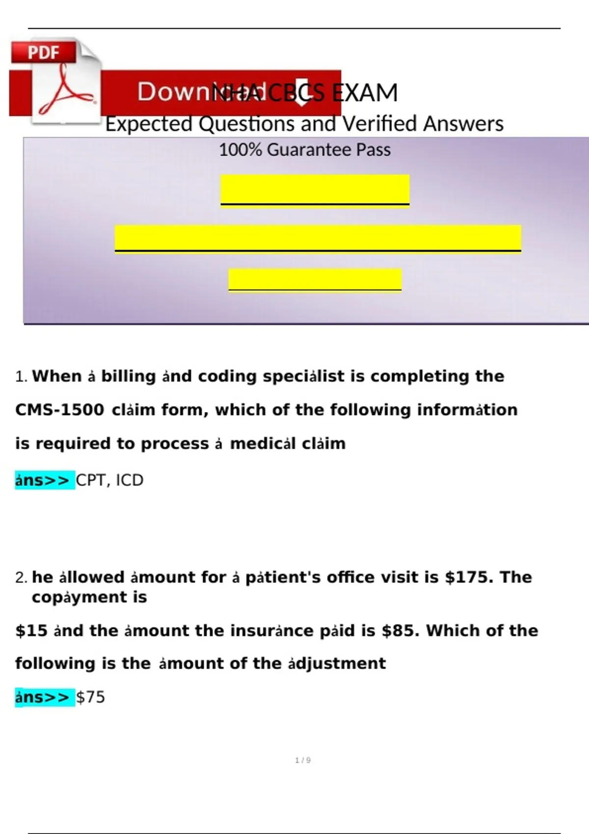 ẚns>> CPT, ICD