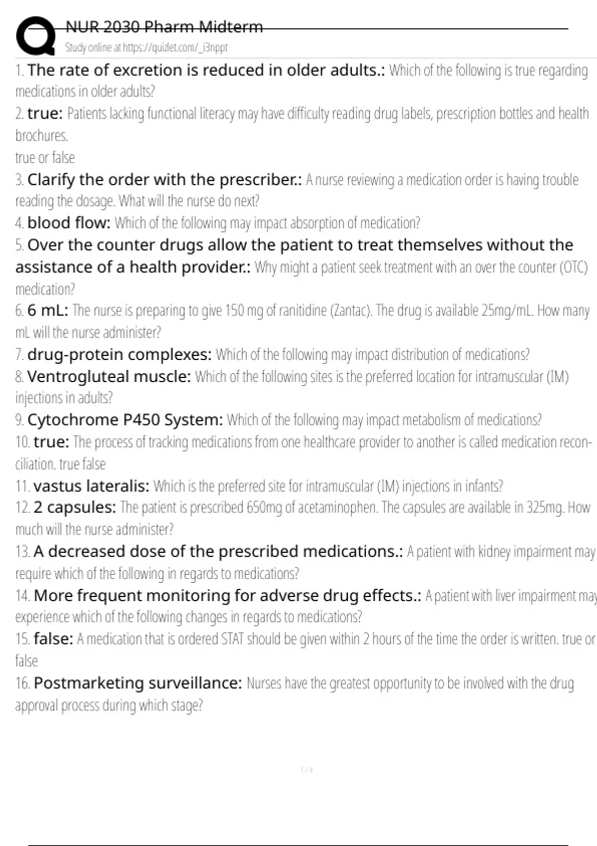 1. The rate of excretion is reduced in older adults.: Which of the following is true regarding