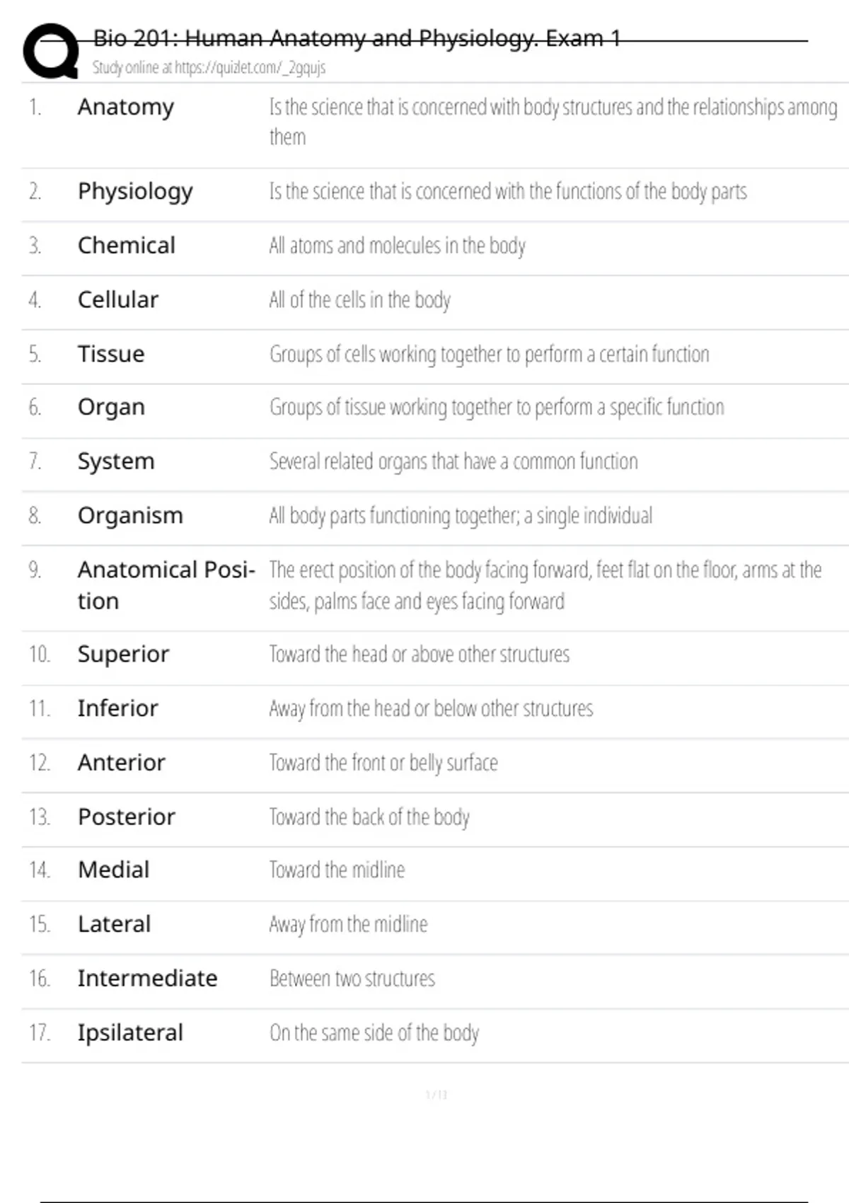 , Bio 201: Human Anatomy and Physiology. Exam 1