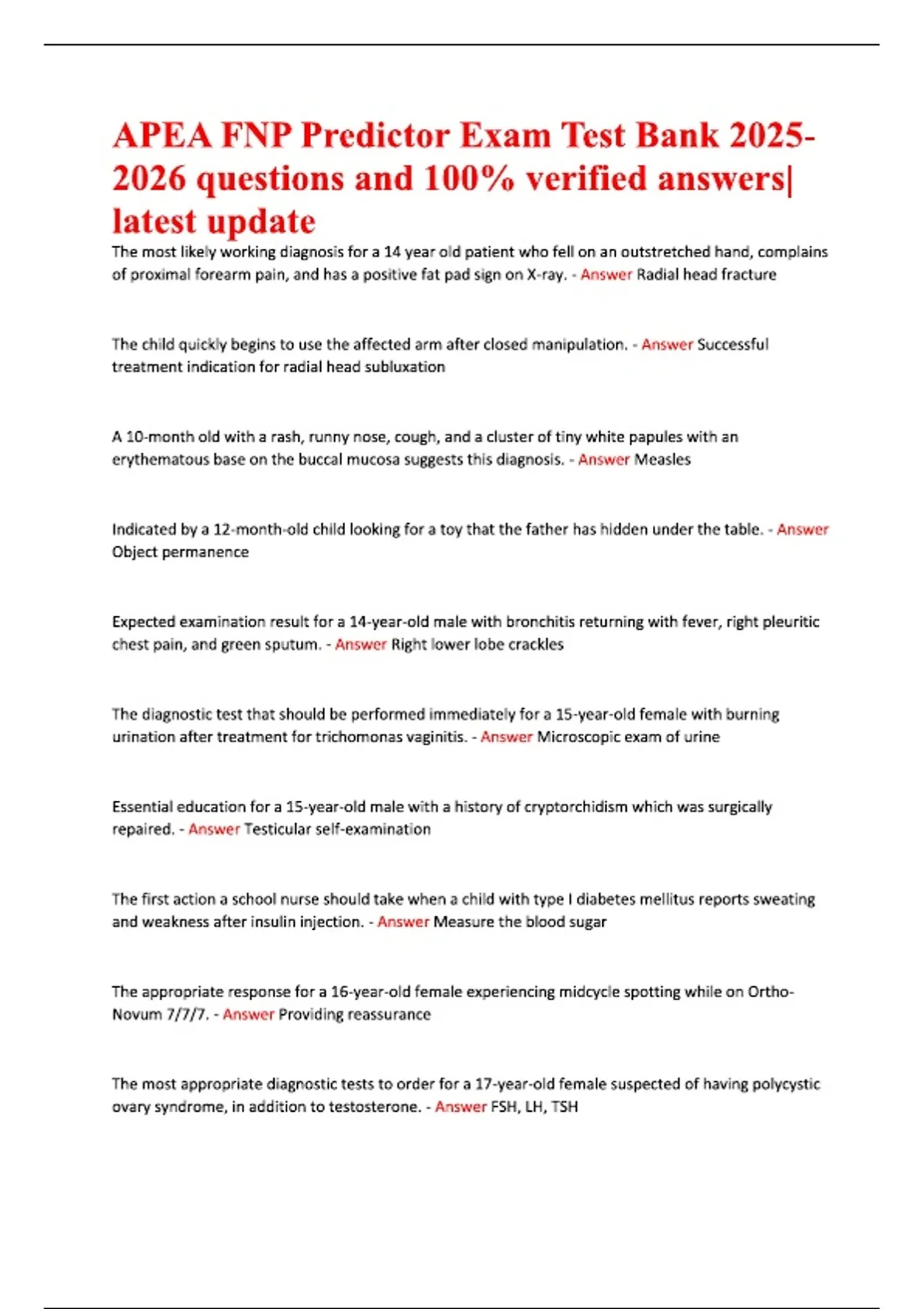 APEA FNP Predictor Exam Test Bank 2025 2026 questions and 100% verified answers| latest update