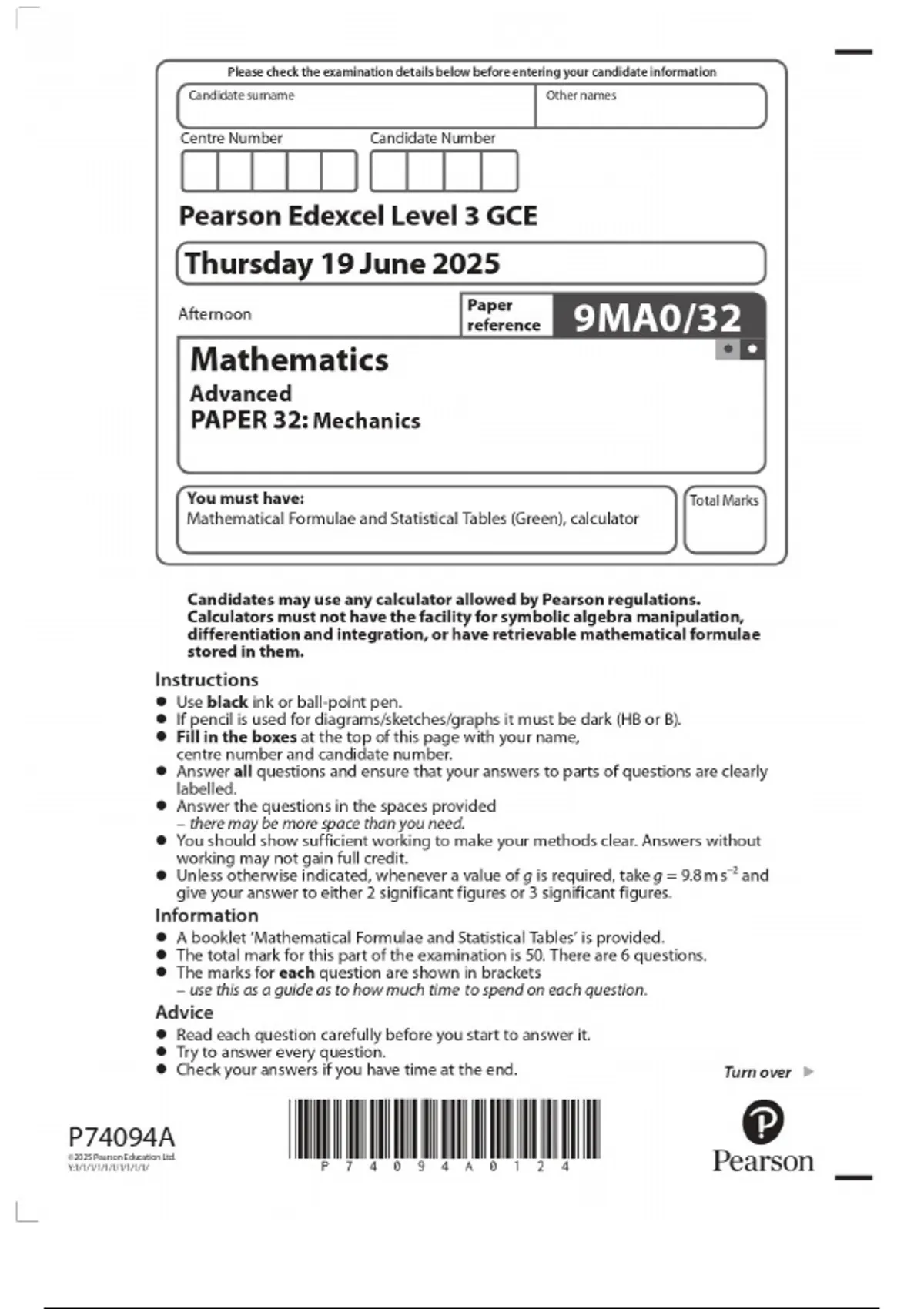 Edexcel Mathematics Mechanics Paper 32 (2025) with this complete guide