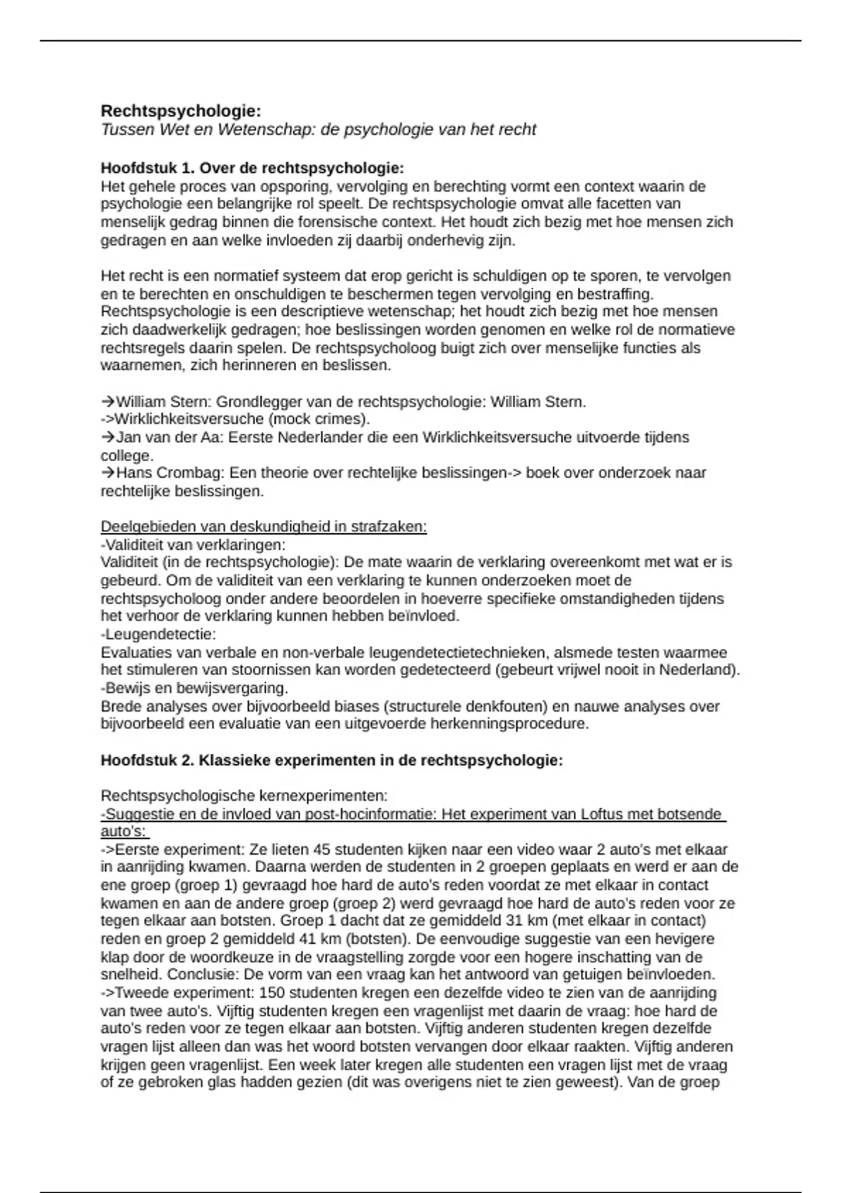 psychologie een belangrijke rol speelt. De rechtspsychologie omvat alle facetten van