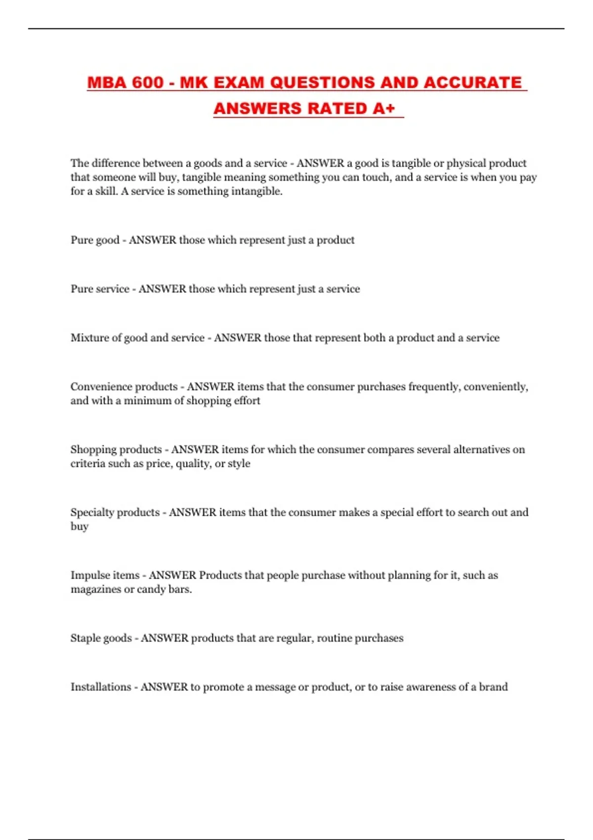 MBA 600 - MK EXAM QUESTIONS AND ACCURATE