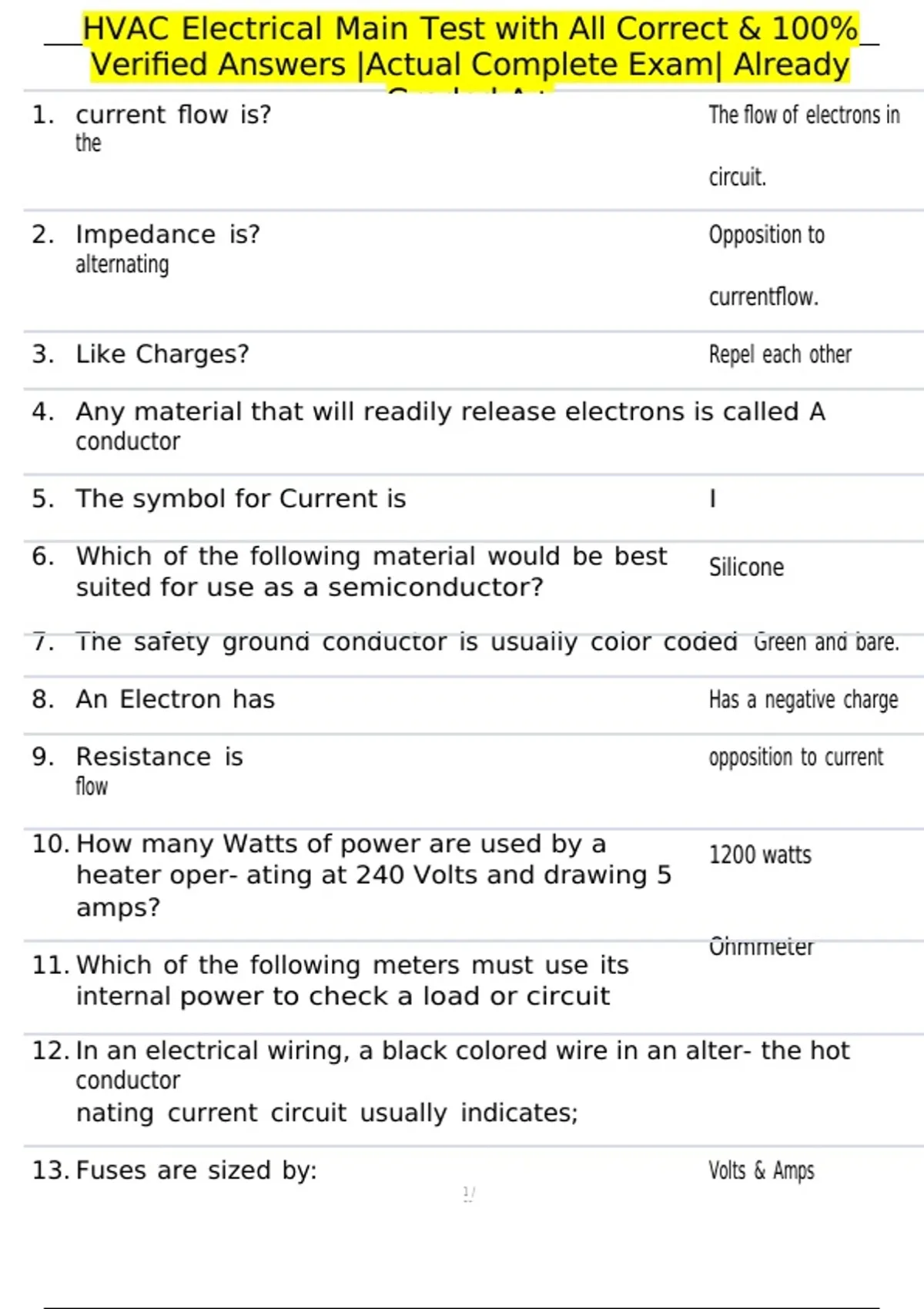 1. current flow is? Graded A+ The flow of electrons in