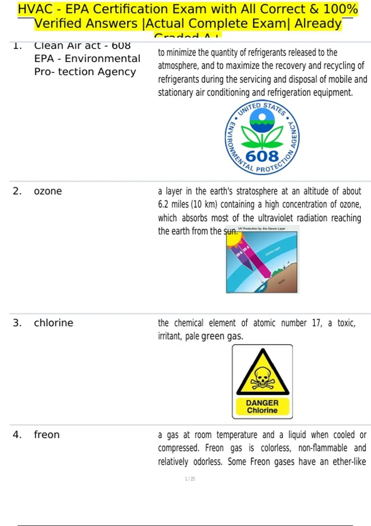 ,HVAC - EPA Certification Exam with All Correct & 100%